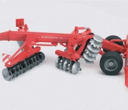A realistic model of the KUHN Discover XL disc harrow by BRUDER in 1:16 scale featuring 4 disc gangs with 54 rotating discs, liftable sections for transport, and sturdy treaded tires. A great addition to BRUDER farm vehicles and made in Germany from durable plastic.