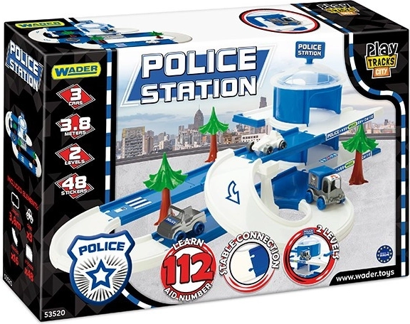 Set out for urban adventures with the Wader Play Tracks City Police Station. Modular parts let you quickly assemble a stable two-level track with a viaduct for a total length of 3.8 meters. Kids enjoy realistic scenarios with the police car, van and jeep from the Kid Cars line and decorate the scene with the included stickers.
