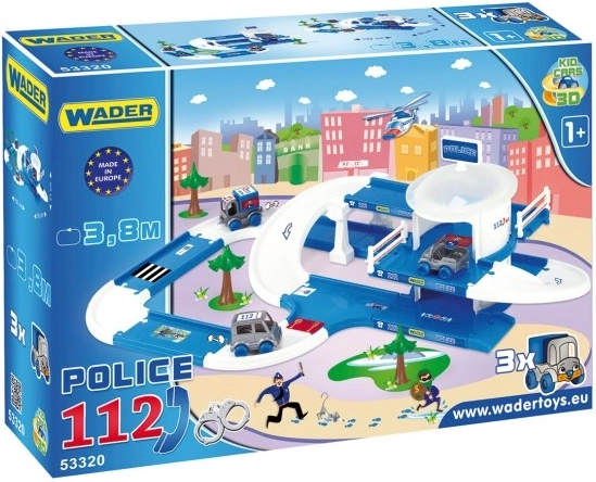 The fun Wader Play Tracks City Police Station gives kids from age 1 action-packed drives on a 3.8 m multi-level track. It includes a two-story station, 3 Kid Cars police vehicles (patrol car, van, jeep) and decorations with stickers. Thanks to easy assembly and safe, durable plastic, it nurtures imagination and fine motor skills and makes a great gift.