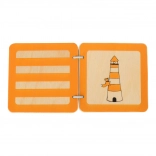 The wooden sensory book with fox Lex offers children a first encounter with simple shapes, cutouts, and illustrations that spark curiosity and imagination. The robust workmanship, smooth edges, and metal rings ensure safe and comfortable browsing even for the smallest hands.