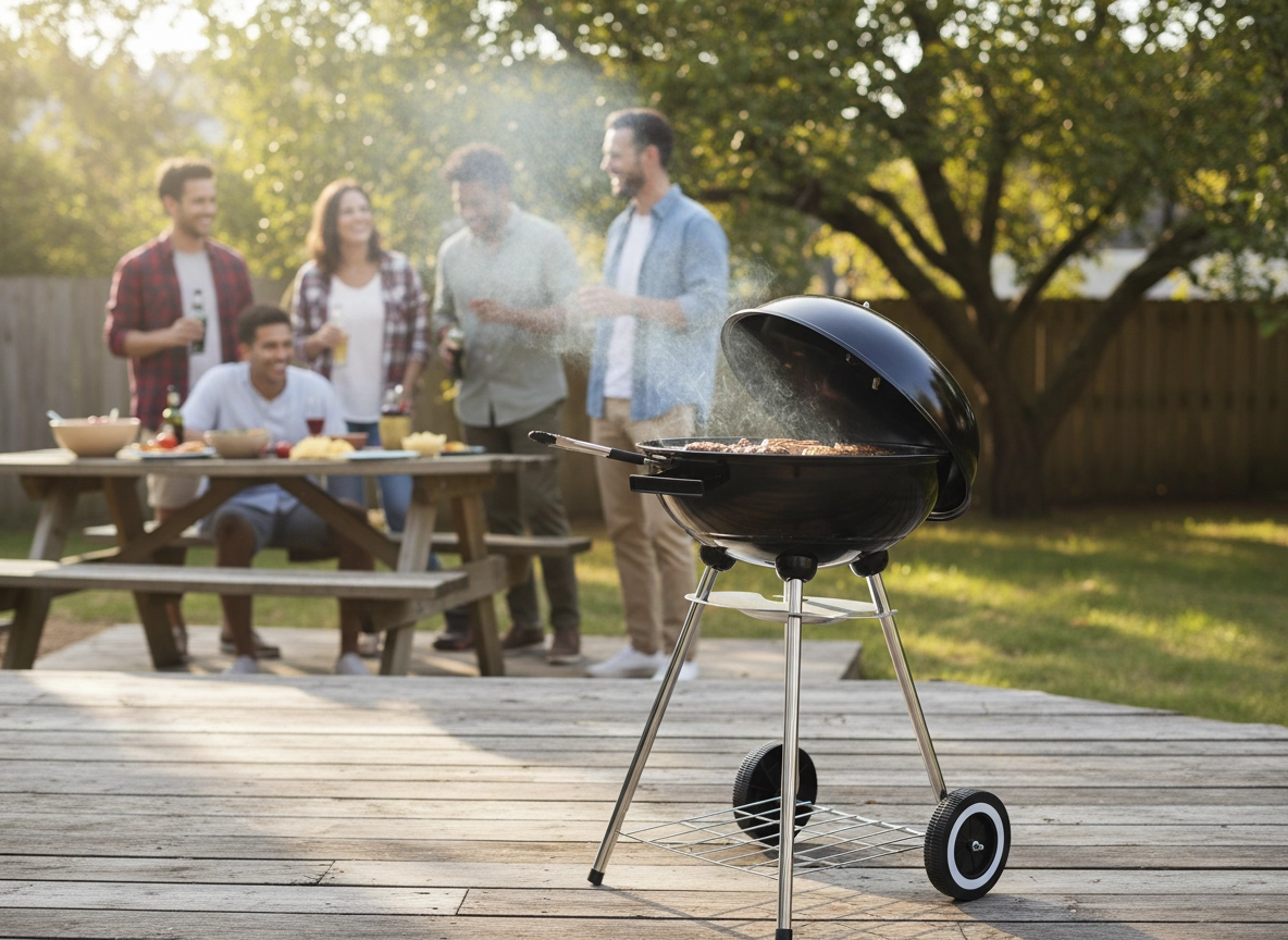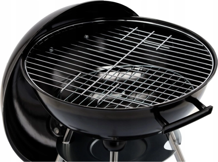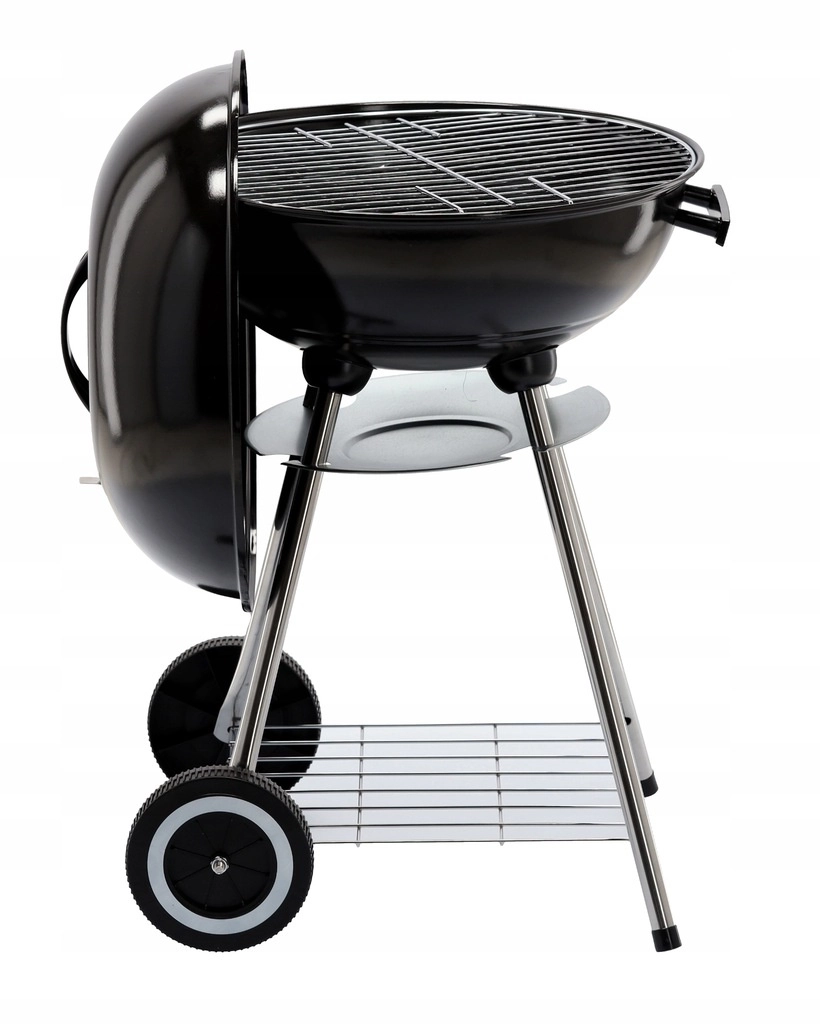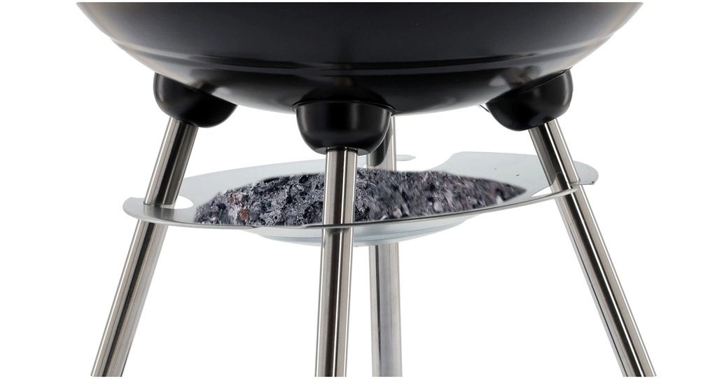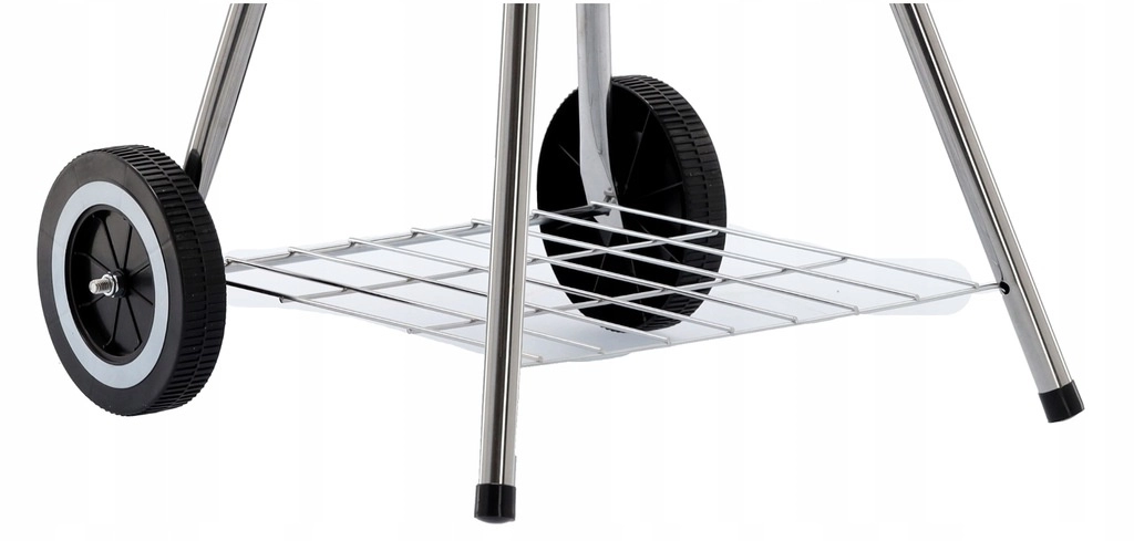 The practical design with two wheels allows easy relocation, the bottom wire shelf keeps fuel and utensils at hand, and the ash catcher simplifies cleaning after each grilling session. A stable tripod with metal legs gives the grill confidence even on uneven surfaces.