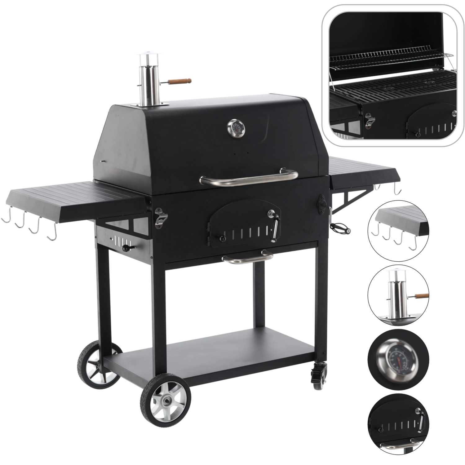 Enjoy the authentic taste of grilling with the VULCANO charcoal grill. It offers a robust construction, a cast-iron grate for perfect heat distribution, a lid with thermometer for precise control, and transport wheels for easy moving. Ideal for the garden, terrace, and weekend get-togethers with family.