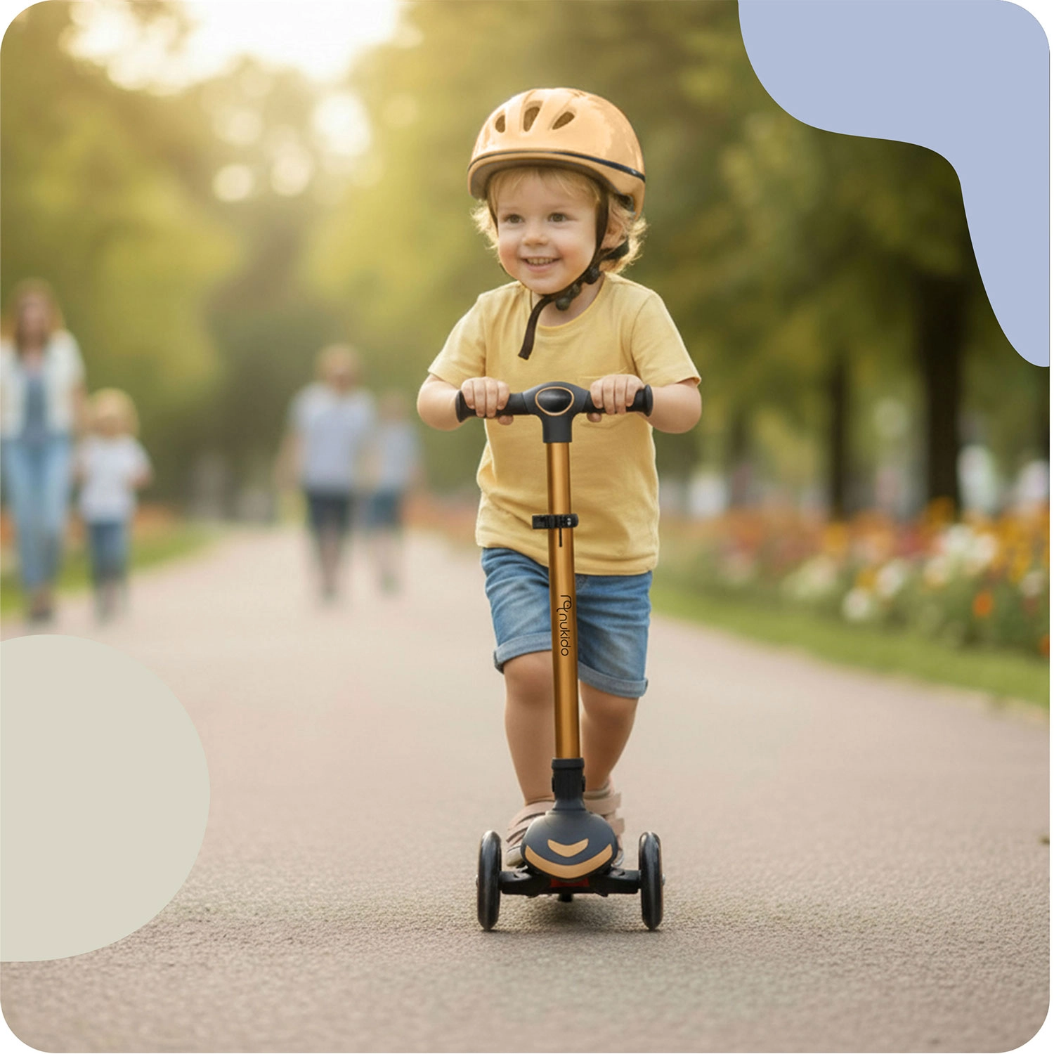 Turning by leaning teaches kids natural balance and provides smooth guidance without sharp handlebar movements. The pair of front wheels helps maintain direction even at lower speeds.