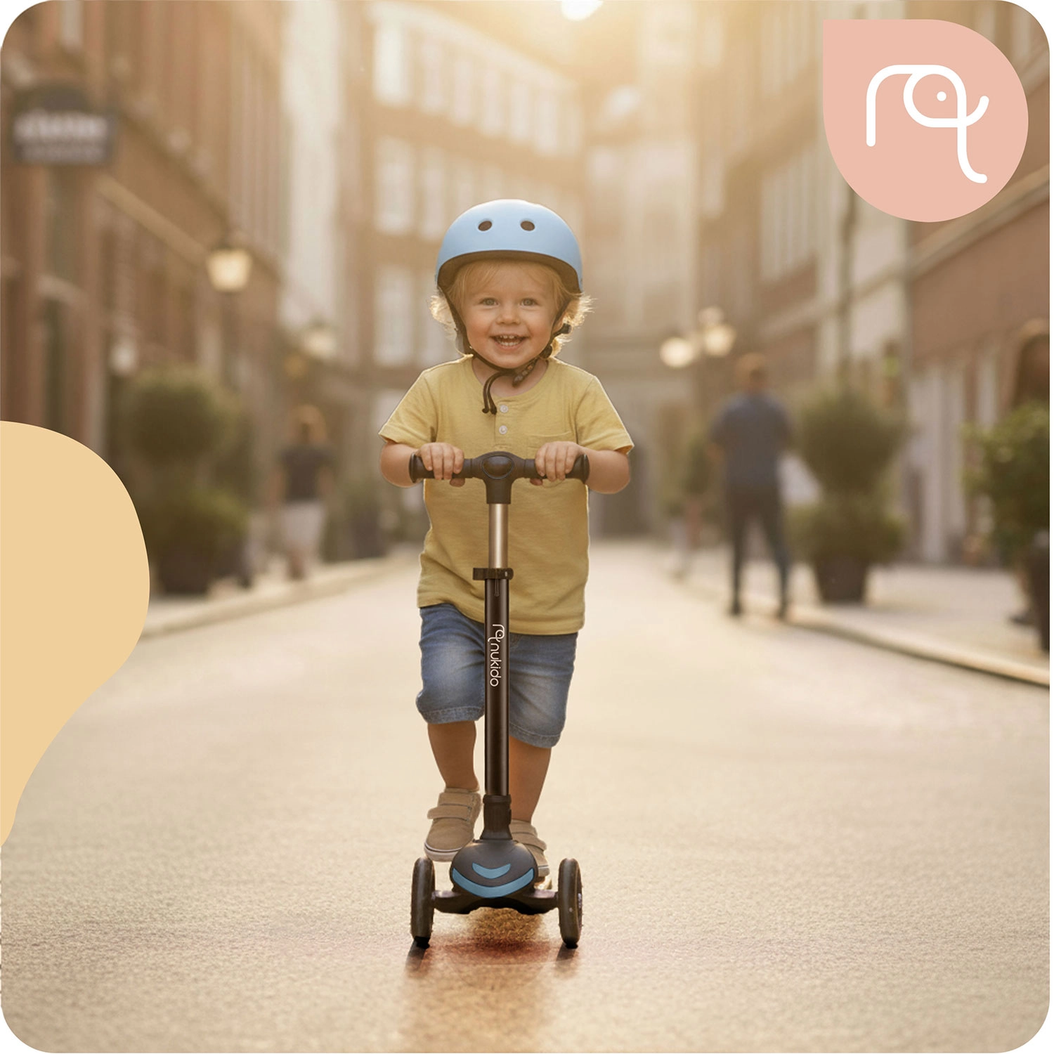 The Nukido Flippo scooter uses an intuitive balance system—steering by leaning the body instead of turning the handlebars. Kids quickly pick up riding technique while developing balance and coordination. Three wheels provide excellent stability even at lower speeds, making it perfect for beginners.