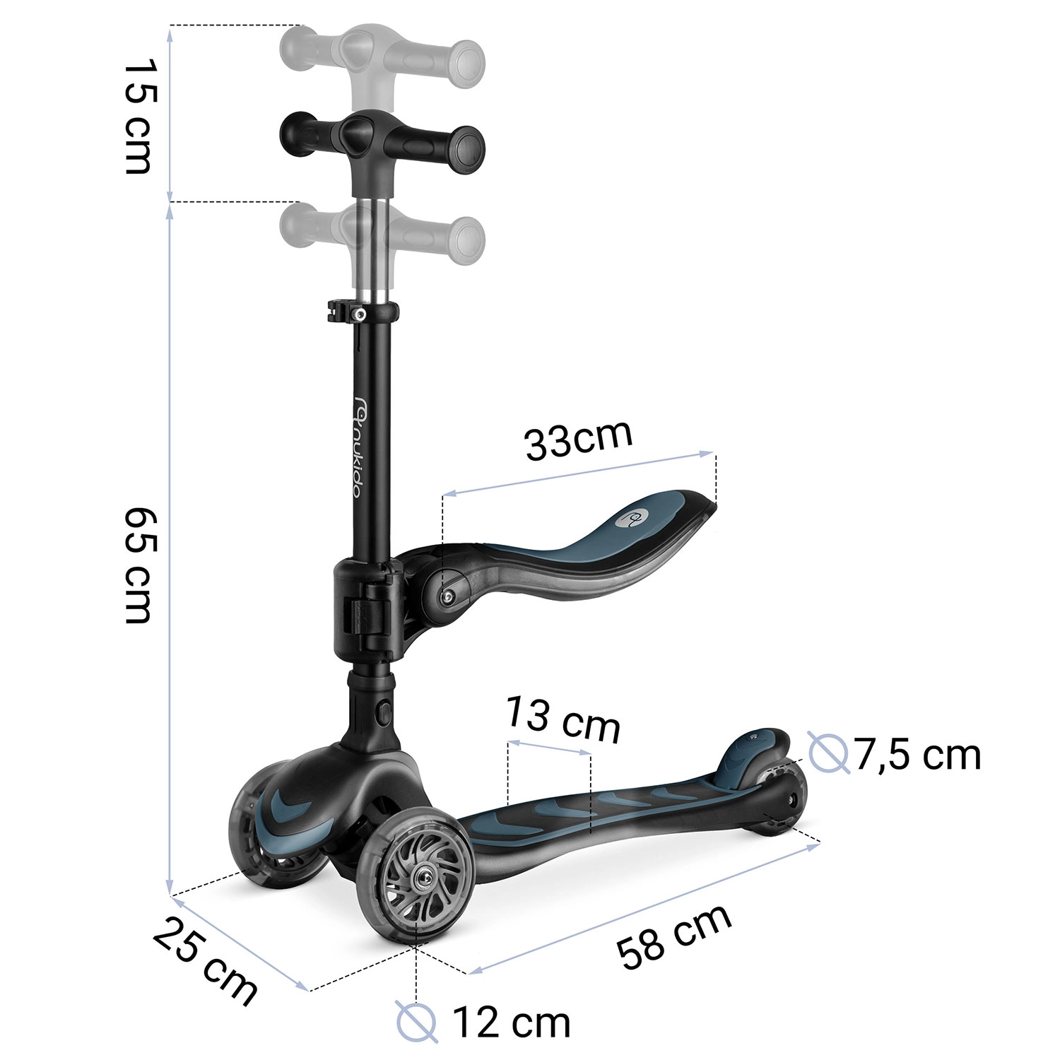Nukido Flippo three-wheeled balance scooter for kids with seat – black