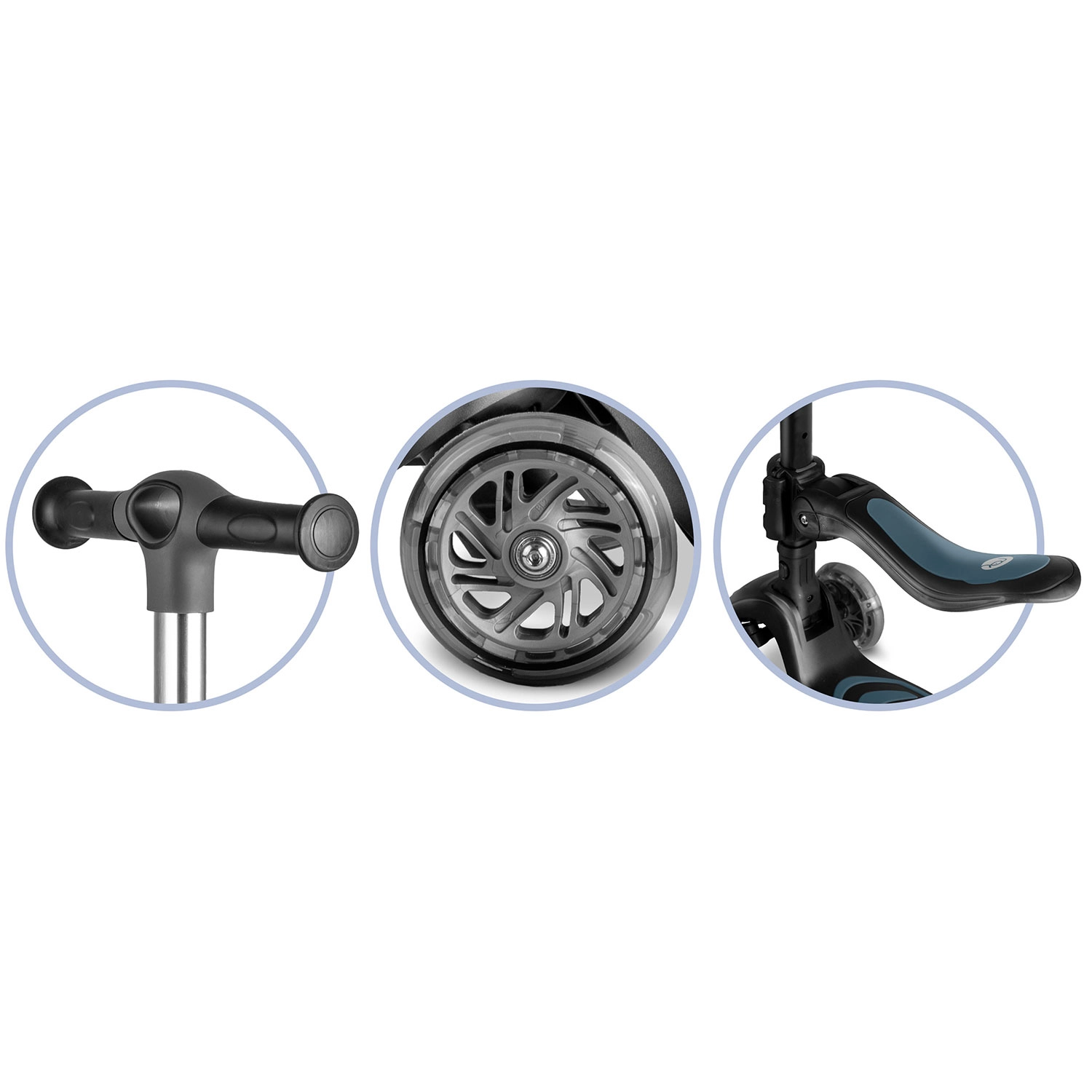 Three-step handlebar height adjustment and an adjustable, removable seat let you tailor the scooter to your child’s current height and skills.
