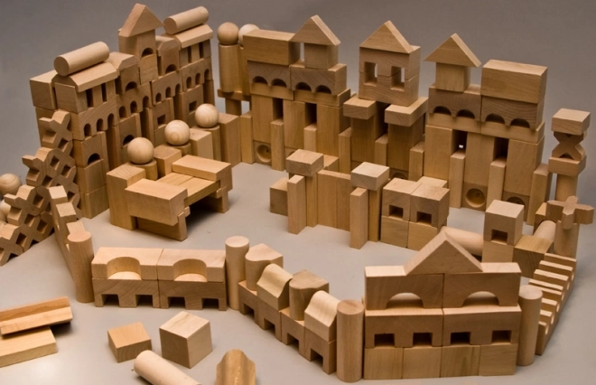 EkoToys wooden blocks offer endless possibilities for creating and learning. Thanks to the diverse shapes, children practice logical thinking, fine motor skills, and spatial imagination. Natural beech wood is durable, pleasant to the touch, and safe for the youngest.