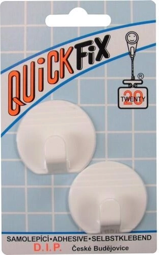 Practical self-adhesive hook in white for easy and quick hanging of small items around the home. Thanks to the quality adhesive tape, you can attach it easily without drilling. Ideal for smooth, non-porous surfaces such as tiles, glass, plastic, or laminate. The pack contains 2 pieces of round hooks made of durable plastic.