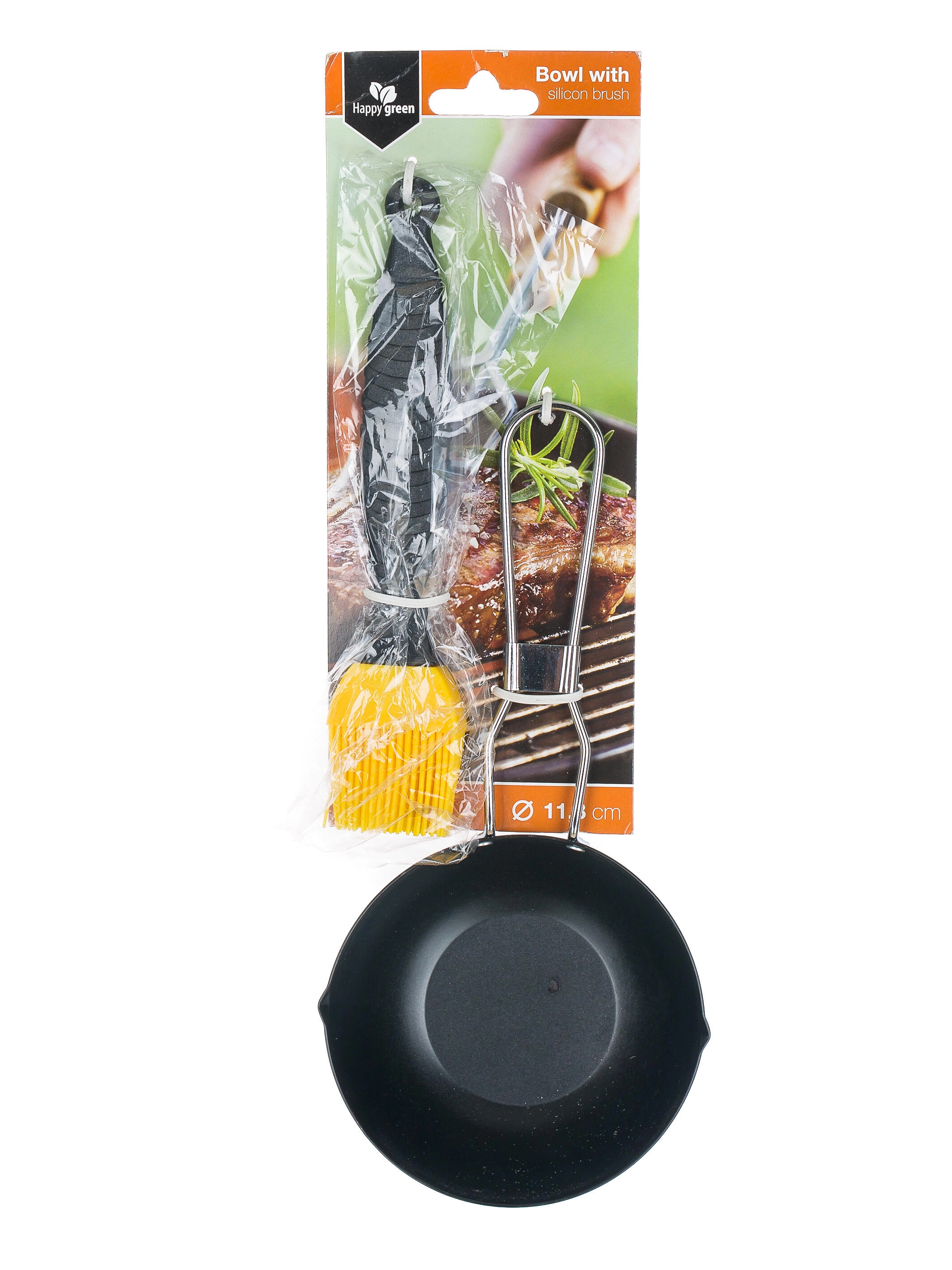 Enjoy convenient grilling with a marinade bowl featuring a non-stick surface and a durable silicone basting brush. Thanks to its compact 11.8 cm diameter, the bowl is great for quick preparation and serving of marinades, sauces, or glazes, while the brush ensures even application without dripping.
