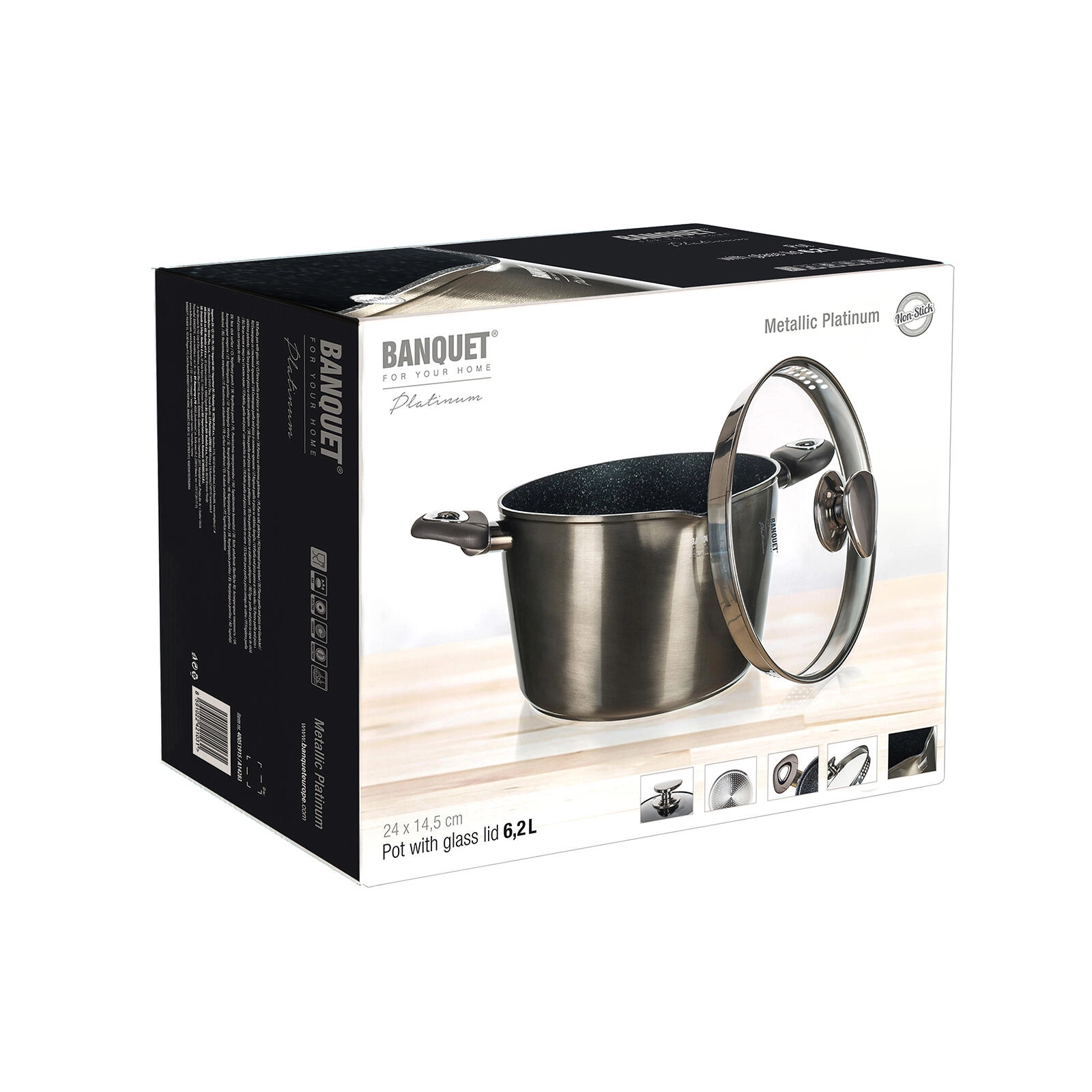 Cook soups, sauces, and pasta without sticking. The METALLIC PLATINUM pot features a cast aluminum body with a sturdy 3 mm wall for even heat distribution and energy-efficient cooking. The non-stick surface is exceptionally hard and resistant to scratching and impacts, standing up to everyday use.