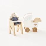 The Baby Set with Accessories from LE TOY VAN is an ideal choice for little caregivers. Children will enjoy realistic play with a cute stroller, high chair, and practical dining set. Hand-painted details and soft textile accessories add authenticity, and the safe design ensures carefree fun.
