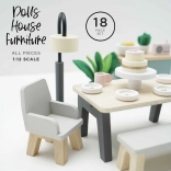 Includes a table, two chairs, a bench, a lamp, and a sideboard for the perfect dolls' house dining simulation.