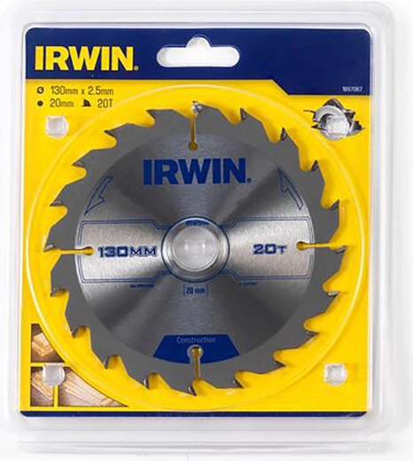 The IRWIN saw blade with a 130 mm diameter and 20/16 mm arbor bore is an ideal choice for precise rip and cross cuts in wood and board materials. The EVO thin kerf reduces load on the saw, saves energy, and still delivers a smooth, clean surface.