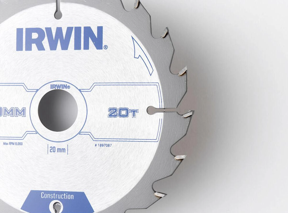 Universal IRWIN saw blade for clean and fast cuts in wood, chipboard, and plywood. Thanks to the EVO thin kerf and ATB alternating top bevel, it offers high speed, lower resistance, and long-lasting sharp carbide teeth. Expansion and cooling slots reduce heating and warping, while the corrosion-resistant finish ensures longer life and stable performance.