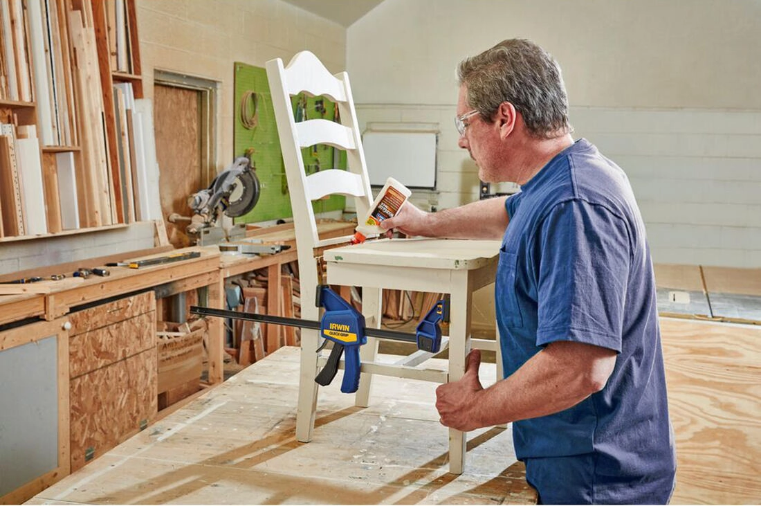 The IRWIN QUICK-GRIP 450 mm is a reliable clamp for medium-duty tasks, designed for quick holding and firm gluing. The heat-treated carbon-steel I-beam with a black oxide finish provides high rigidity and long service life with minimal deflection.