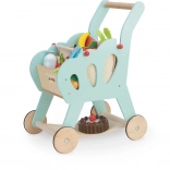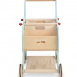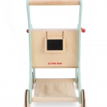 The cart features a thoughtful layout — two top compartments, a spacious base for bigger “purchases,” a fabric bag for packing groceries, and a handy chalkboard for writing with chalk. The play supports role-play, development of communication, hand–eye coordination, and cognitive skills. Careful craftsmanship with an emphasis on ethics and sustainability delights both children and parents.