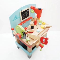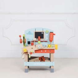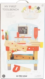 “My First Workbench with Tools” is ideal for little craftsmen who want to explore the world of tools and workshops. This toy is made from high-quality FSC wood, ensuring long-term durability and environmental friendliness. It includes 20 parts, including a drill, circular saw, clamp, saw, hammer, screwdriver, and many other tools. There's also a chalkboard for creative expression.