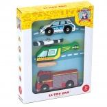 Introducing the rescue vehicle set from Le Toy Van – the perfect gift for children. This toy promotes imaginative play with three rescue vehicles: a helicopter, police car, and fire truck. Each is made from ethically sustainable rubberwood and painted with non-toxic water-based paints, ensuring safety during play.