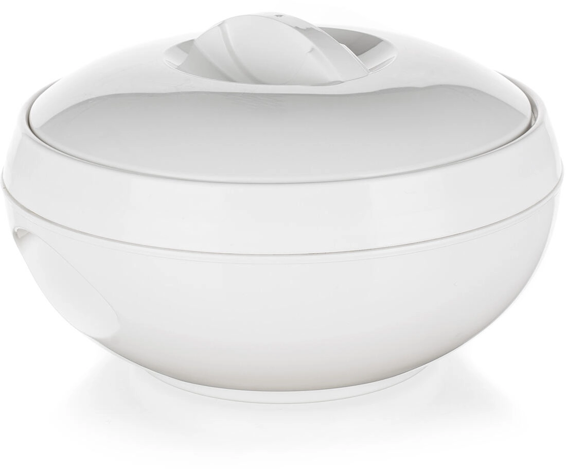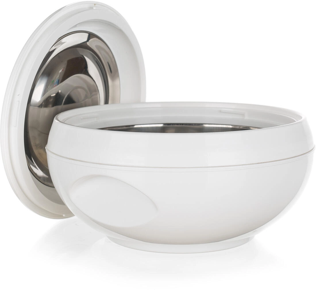 The AVANZA 3.5 l thermal bowl is a reliable helper for everyday cooking and festive feasts. Thanks to the high-quality stainless-steel insert and PUR foam filling, it excellently maintains food temperature and protects it during storage and transport. The elegant white design suits any table and is easy to clean.