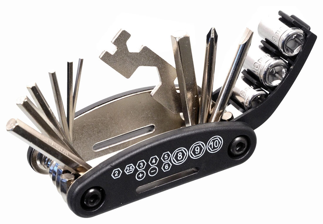 Integrated hex keys, screwdrivers, open-end and socket wrenches cover the most common bike tweaks and repairs right on the trail.