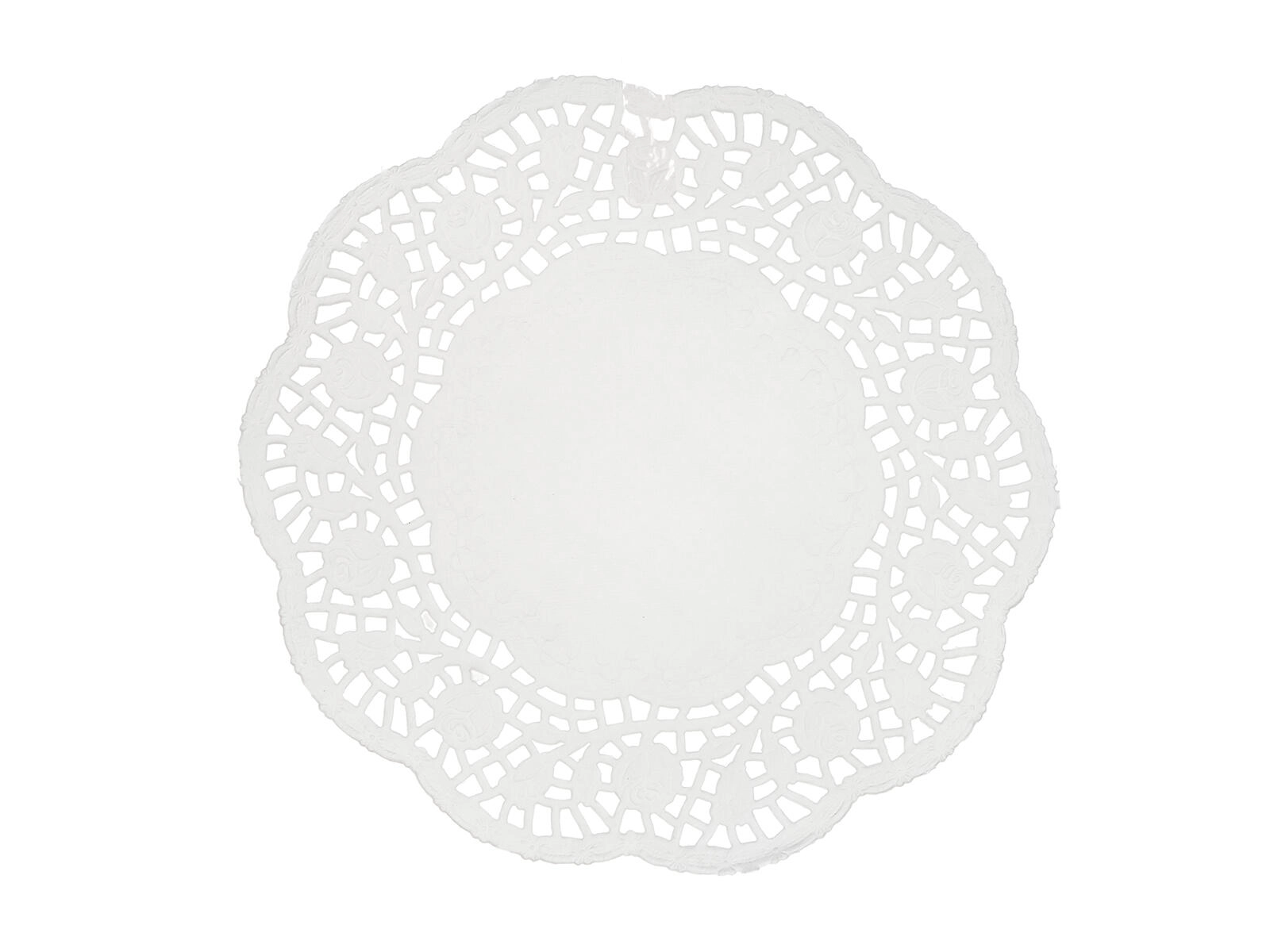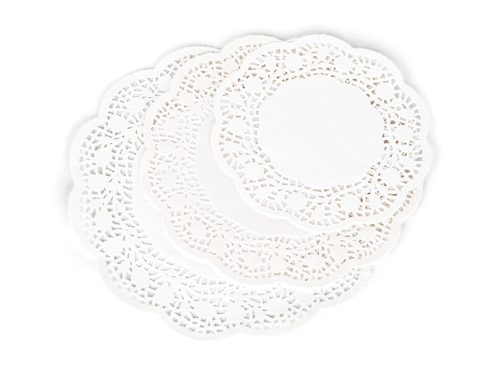 An elegant set of round CULINARIA paper lace doilies beautifully enhances the presentation of cakes, slices, and savory dishes. The pack includes three popular diameters for versatile use. Doilies with delicate lace cutouts add a festive touch to the table, improve presentation, and protect trays and plates at the same time. Ideal for home baking, parties, and catering. 18 pieces per pack, 3 different sizes, decorative lace edge, hygienic and disposable.