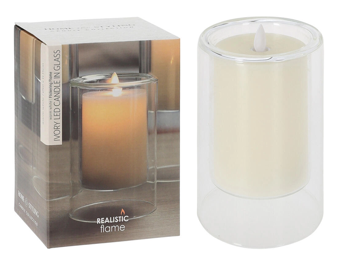 Create a cozy atmosphere at home with an elegant LED candle in glass in the Ivory shade. The realistic flickering flame effect brings the charm of a real candle without smoke, soot, or the risk of an open flame.