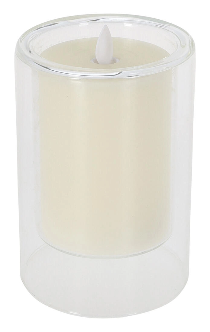 LED Candle in Glass, Ivory, 10 × 15 cm with Flickering Flame