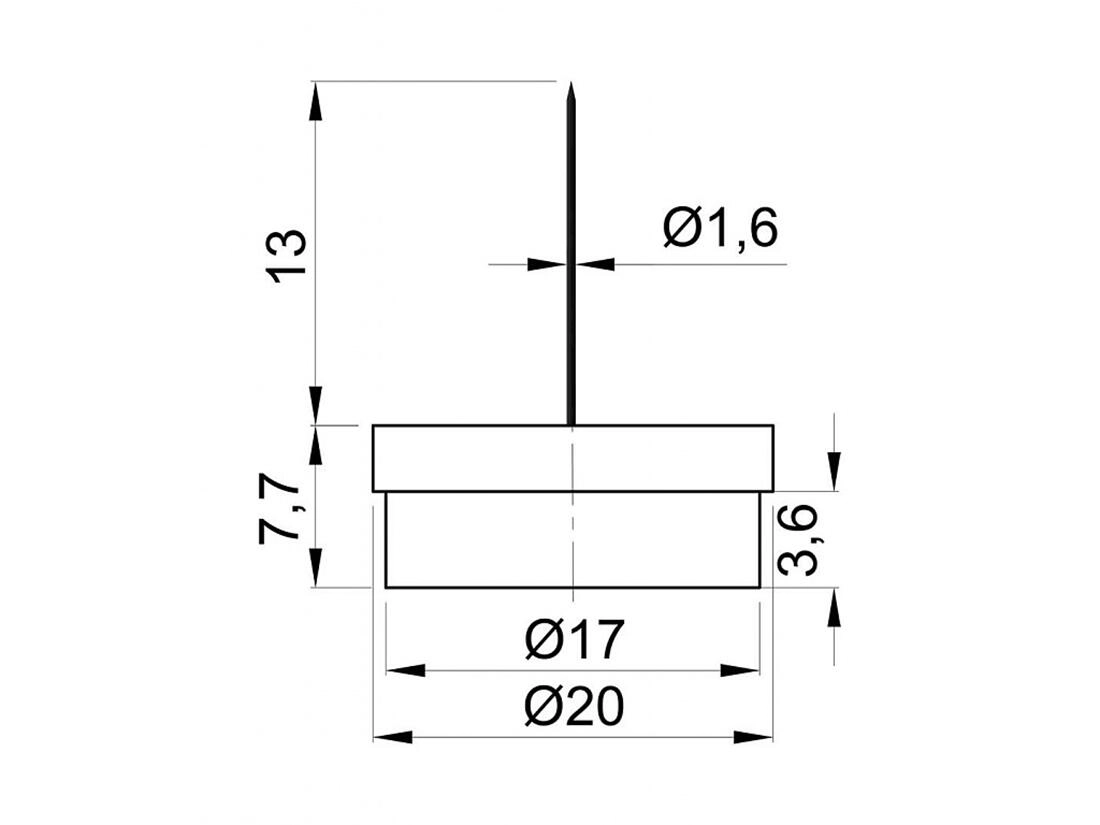 Practical felt pads with a nail protect floors from scratches and dents. With a 20 mm diameter and sturdy construction from synthetic felt and polystyrene, they provide reliable protection, easy hammer-on installation, and long service life for chairs, tables, and dressers.