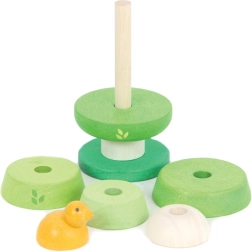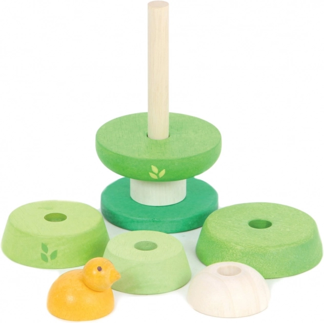 Discover a quality stacking toy shaped like a tree with a cute little bird on top. The pieces in varying shades of green encourage children to distinguish colors and shapes, while the stable base ensures safe play. Thanks to the flexible rod, stacking is comfortable and gentle even for the smallest hands.