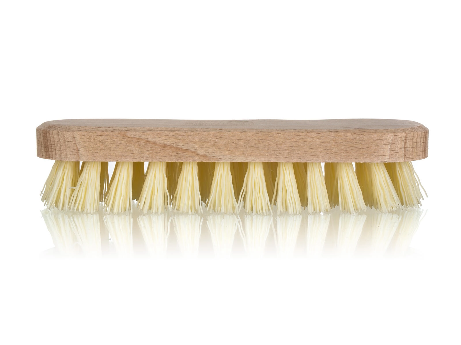 The handheld floor brush is ideal for everyday cleaning of floors in the home, workshop, and on the terrace. The durable synthetic PE bristles tackle grease, dried-on grime, and everyday dust, while the wooden handle offers a pleasant grip and long service life.