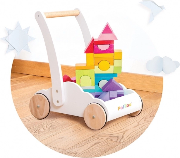 The Petilou Rainbow Block Walker is designed to give children confidence and stability during their first steps. It comes with 45 blocks in various rainbow shades that support spatial awareness, dexterity, and motor development.