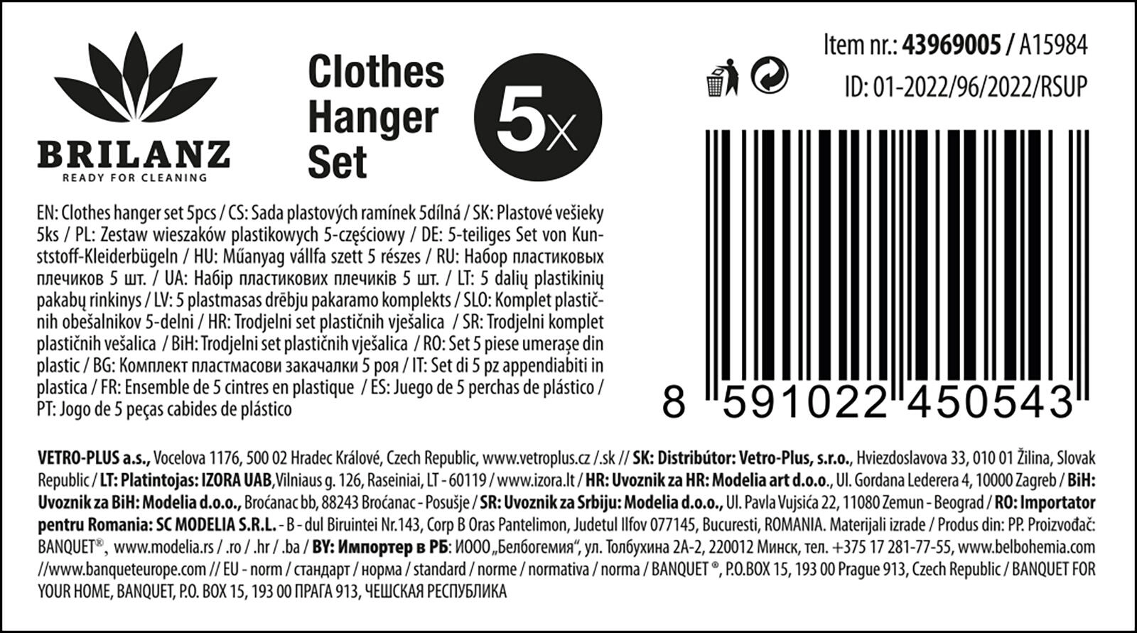 The BRILANZ plastic hanger set helps keep your wardrobe tidy and your clothes in great shape. Thanks to the rotating hook, you can easily adjust the hanger orientation in any closet and use space more efficiently. Non-slip notches and a center hook securely hold delicate pieces with straps or accessories.