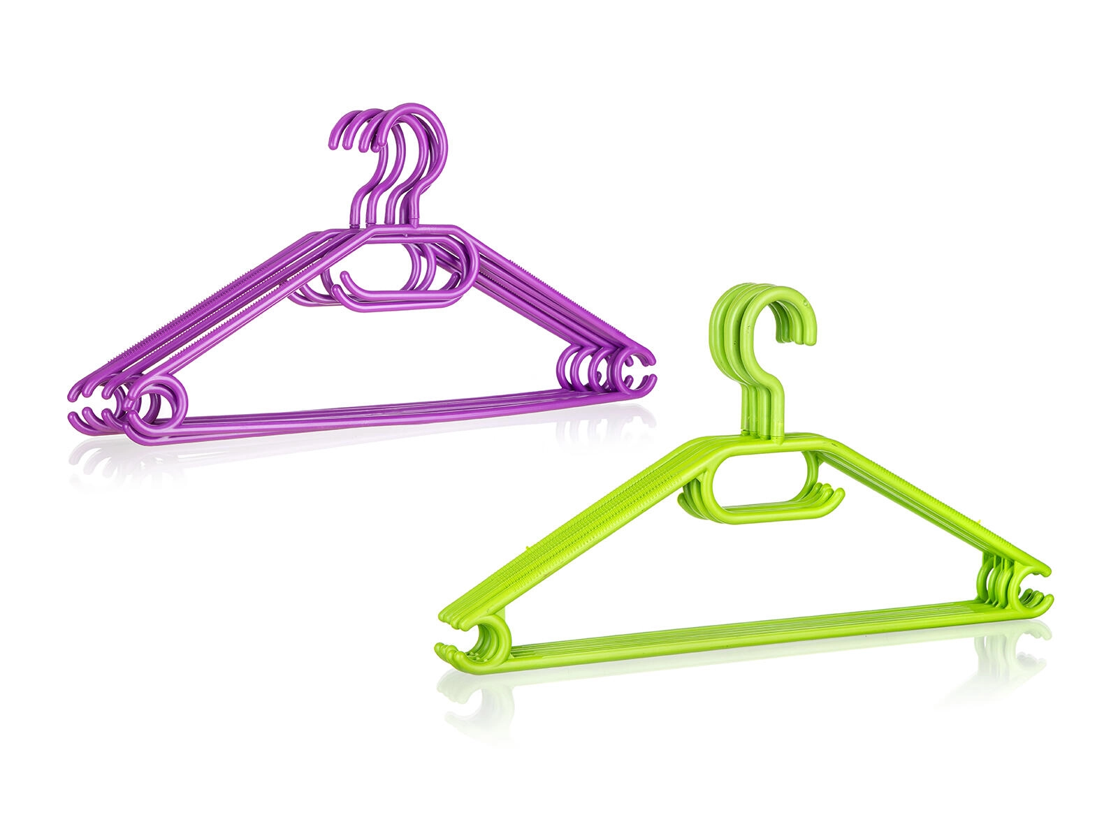 The hangers are lightweight, durable, and easy to maintain. The bottom bar is ideal for trousers, skirts, or scarves. The green and purple color mix gives your wardrobe a fresh look and makes it easy to distinguish clothing for the whole family.