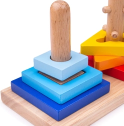 This clever wooden toy motivates children to explore. The pieces are placed on three different pegs, with some requiring rotation or the correct orientation. Children naturally practice finger dexterity, patience, and spatial imagination.