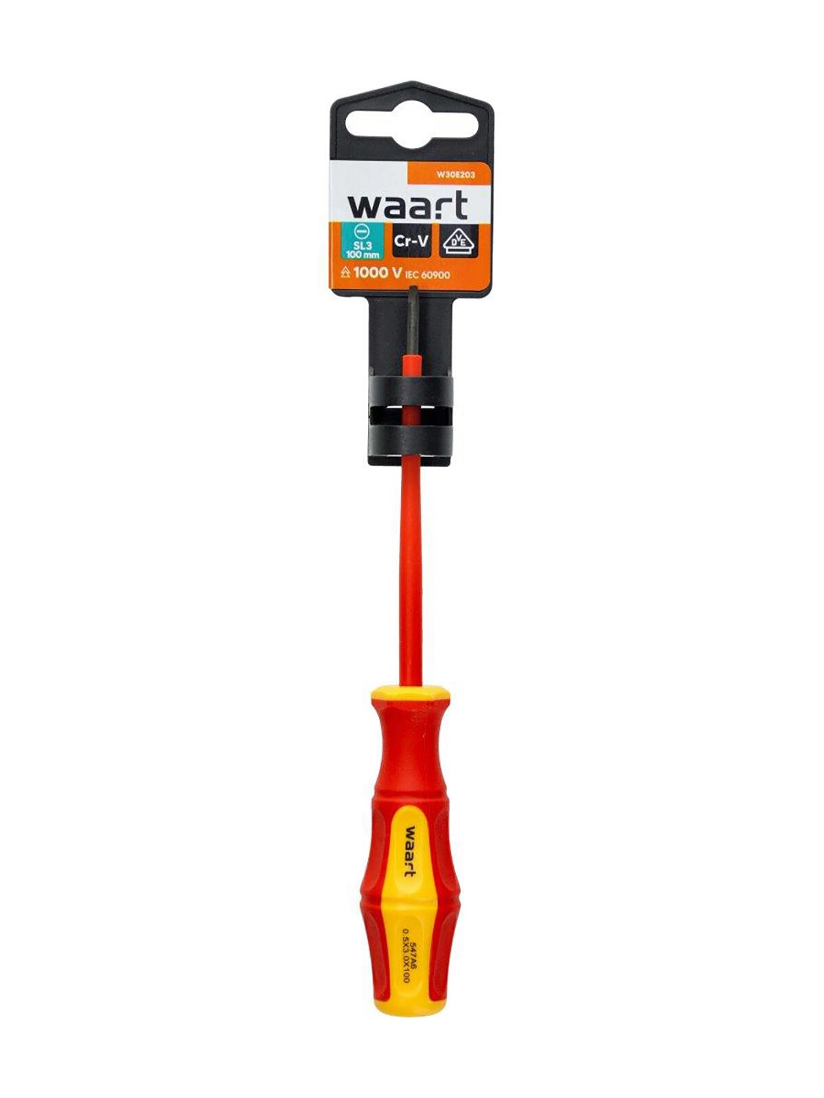 The reliable flat electrical screwdriver SL 3.0 × 100 mm is designed for precise and safe work with electrical components. The chrome-vanadium steel blade provides high strength and wear resistance, while the VDE 1000 V insulated design protects the user when working under voltage.