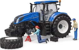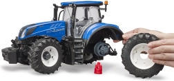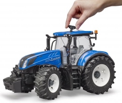 Discover the detailed model of the Bruder New Holland T7.315 tractor in 1:16 scale. This tractor features opening doors and an engine cover, providing authenticity and engaging play. A steerable front axle with an extended steering wheel allows for easy maneuvering, while detachable wheels add interactive functions for even more fun.