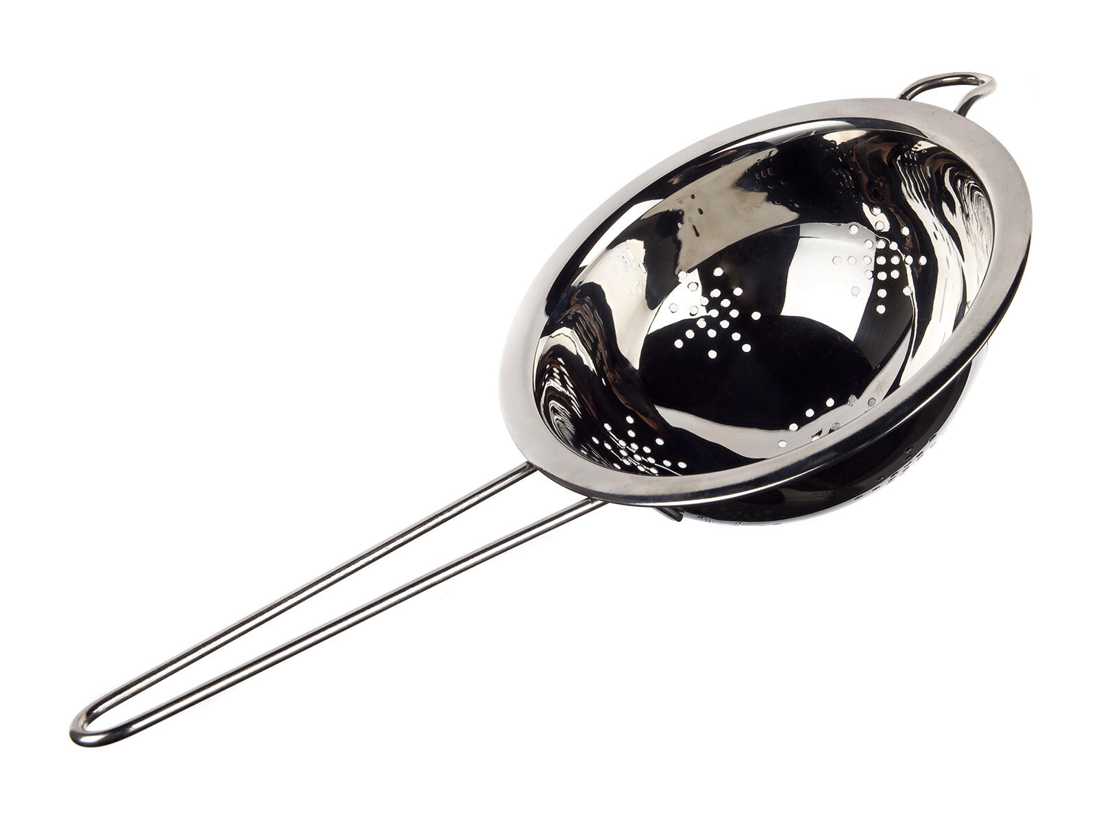 The thoughtfully designed ergonomic handle with a hole provides a comfortable grip and allows hanging on a kitchen rail. The fine perforation efficiently drains water and ensures fast, even straining without unnecessary liquid retention.