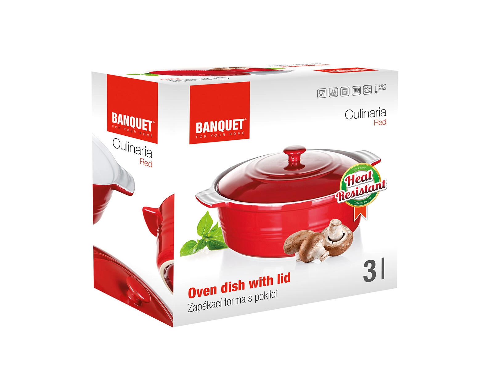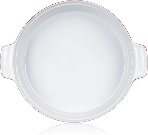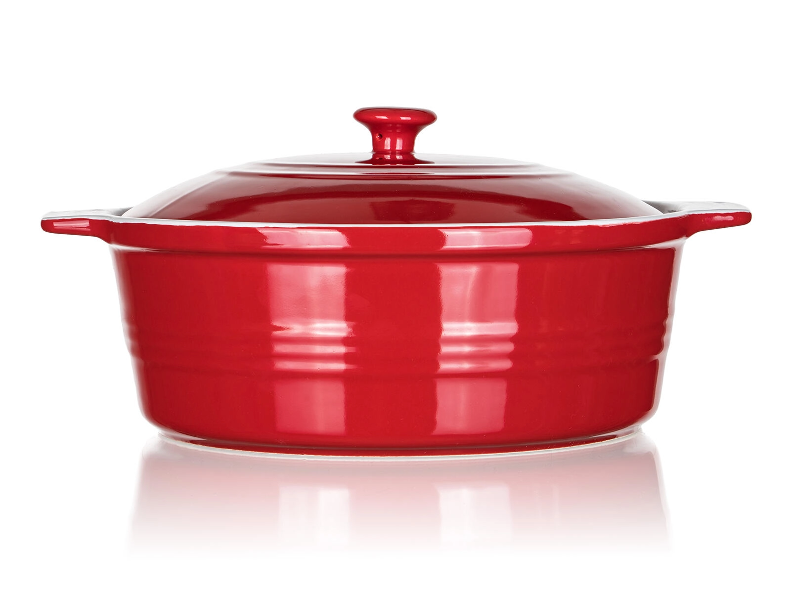 This high-quality round baking dish with lid from the CULINARIA range is great for lasagna, baked pasta, meat, and vegetables. The ceramic material gradually stores and releases heat, so food cooks evenly and stays juicy. The stylish red exterior with a white interior goes straight from the oven to the table.