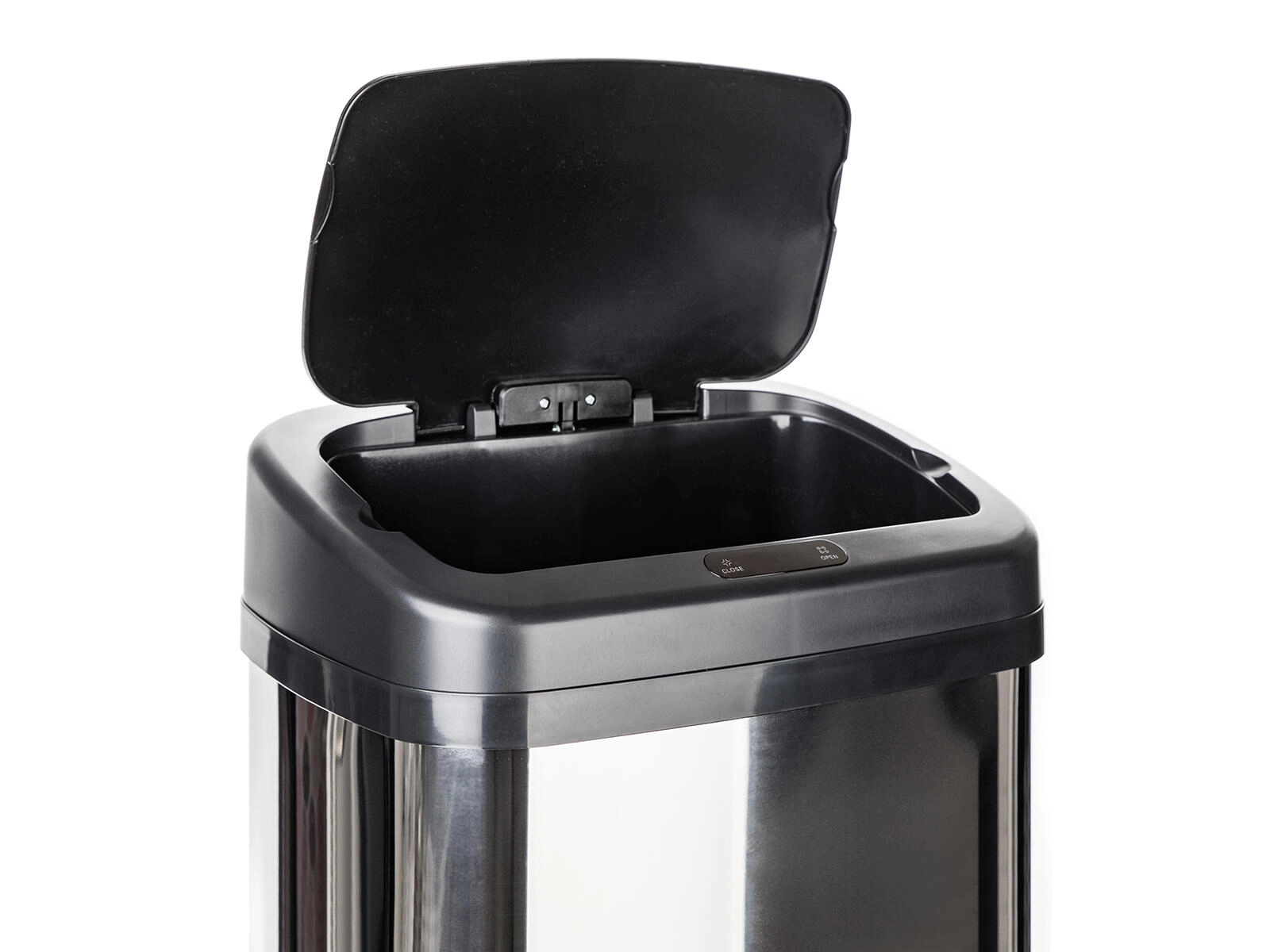 The modern SENZO touchless trash can with a 50-liter capacity is an ideal choice for kitchens, offices, and homes. The stainless body with a black plastic lid looks stylish, is durable, and easy to maintain. The lid sensor ensures completely hygienic hands-free operation—the lid opens automatically and closes again after you dispose of waste.
