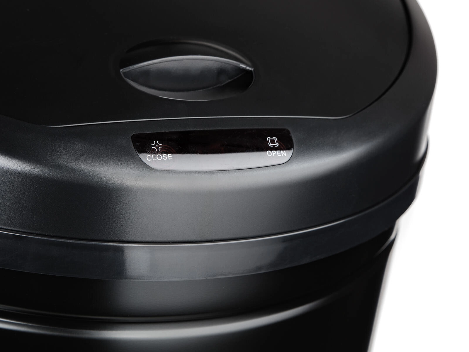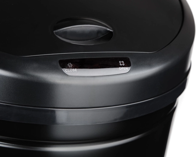 The bin uses a photoelectric sensor with low power consumption, powered by four AA batteries (not included). The trash bag attaches to a retaining ring, staying firmly in place and hidden from the outside. Thanks to its round footprint, the bin fits well in corners and narrower spaces and provides a generous 50-liter capacity without an inner plastic liner for maximum usable volume.