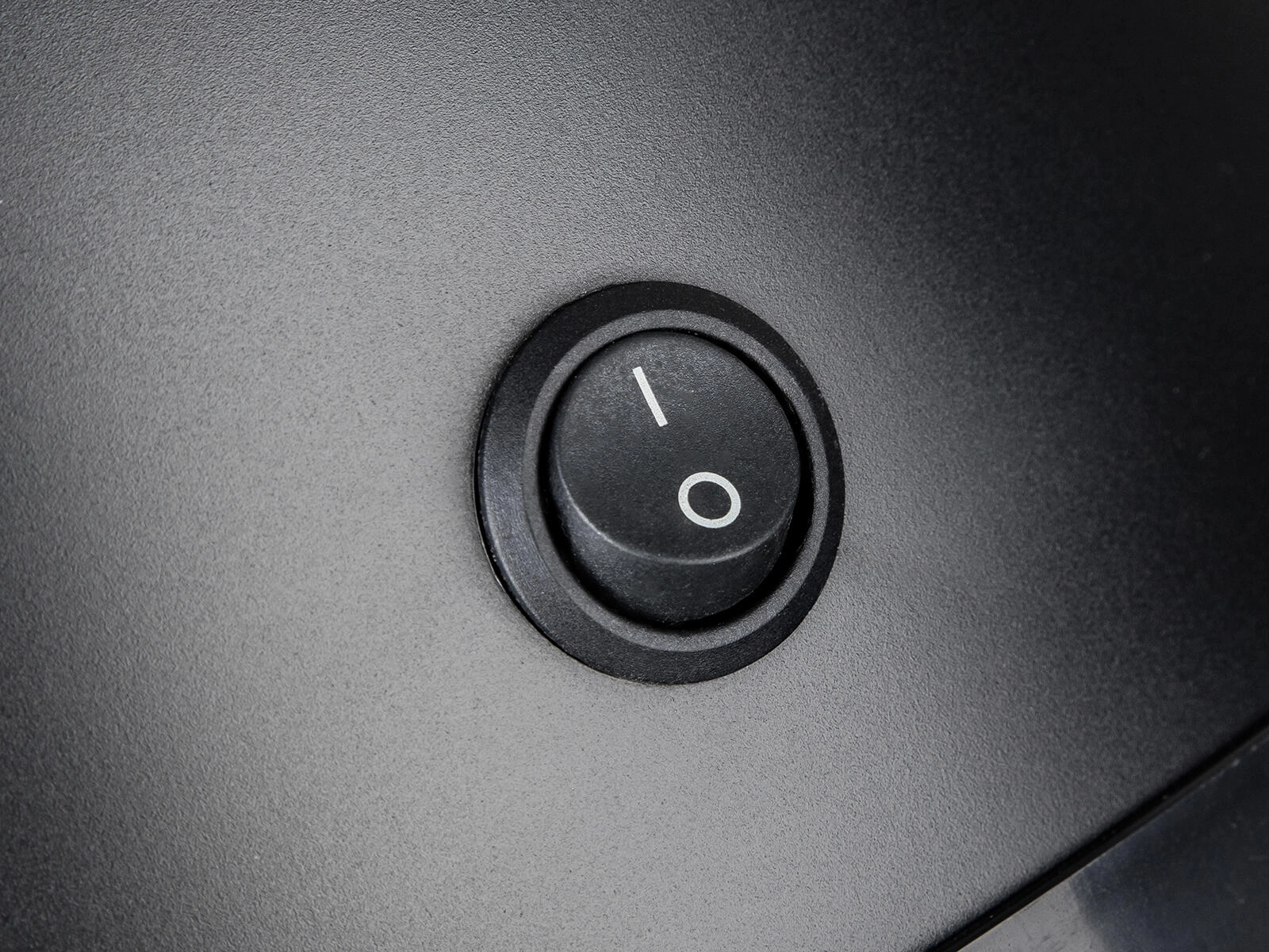 The round stainless steel body with black coating and durable plastic elements is easy to clean and fits perfectly into modern interiors.