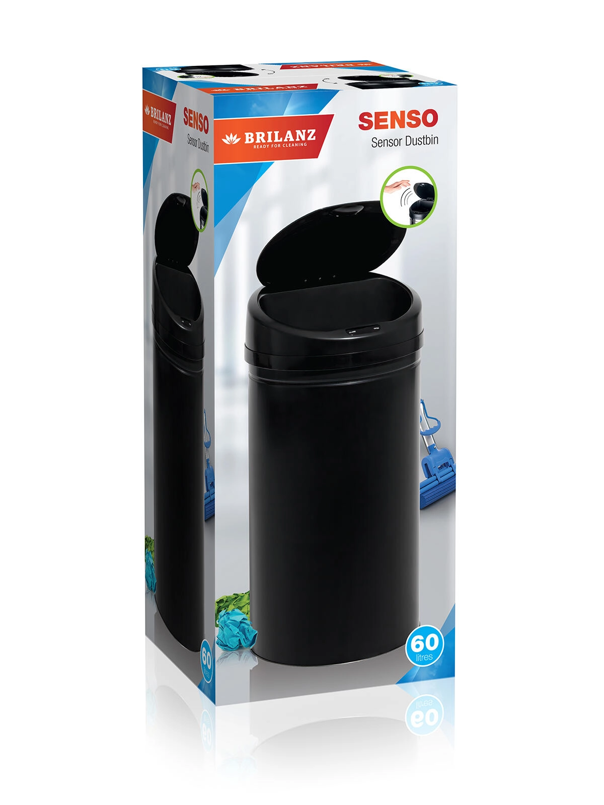 Keep your home and office clean with the SENZO 50 l touchless bin. Thanks to the automatic lid opening via sensor, your hands stay clean and the environment hygienic. The elegance of the black finish and durable stainless steel and plastic construction suit modern interiors. The bin offers energy-efficient battery operation, easy bag attachment with a retaining ring, and quiet, reliable performance.