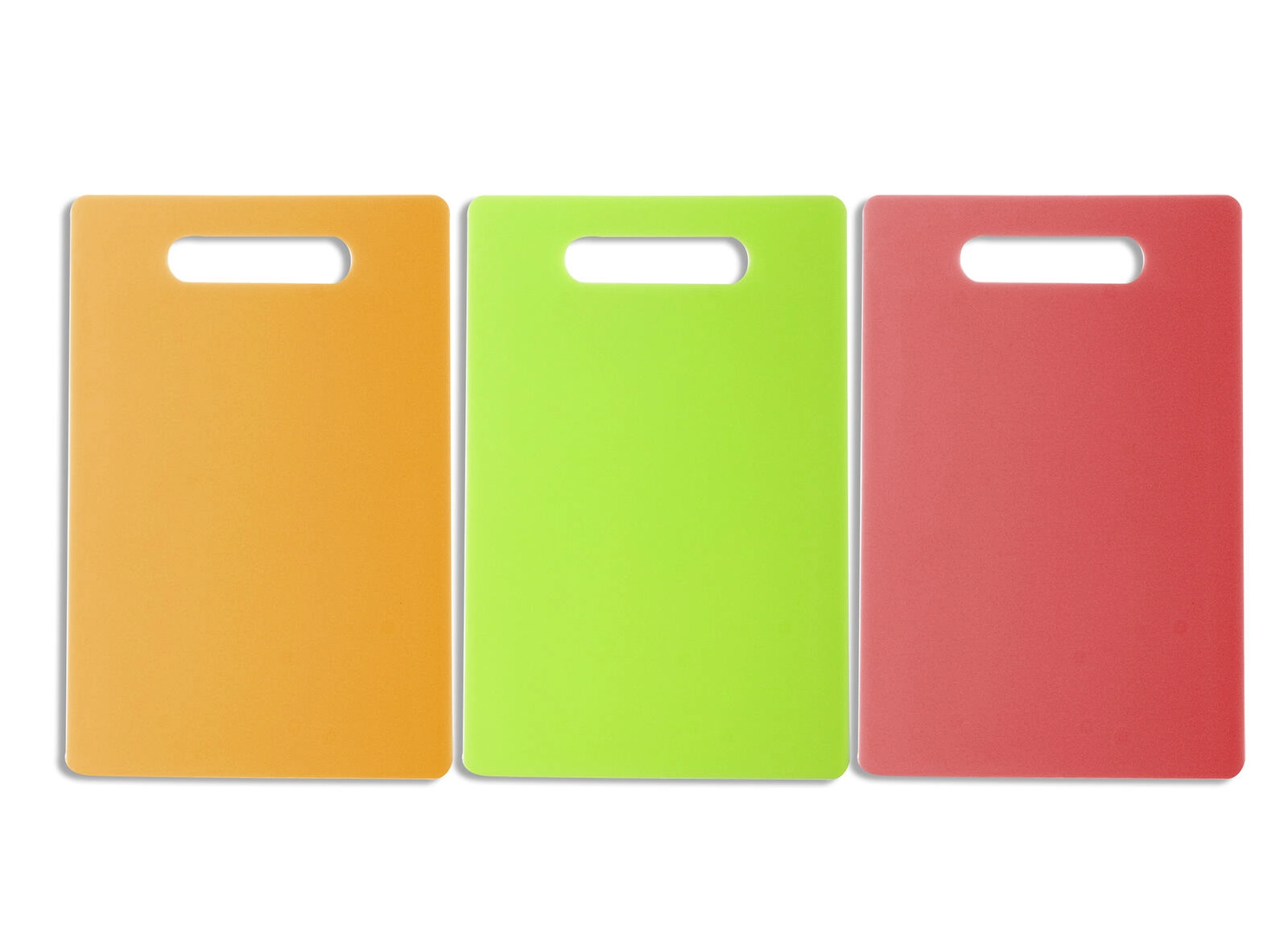 Choose from a cheerful mix of colors (orange, red, green) to match your kitchen. The non-slip surface and rounded corners ensure safer handling and comfort while working.