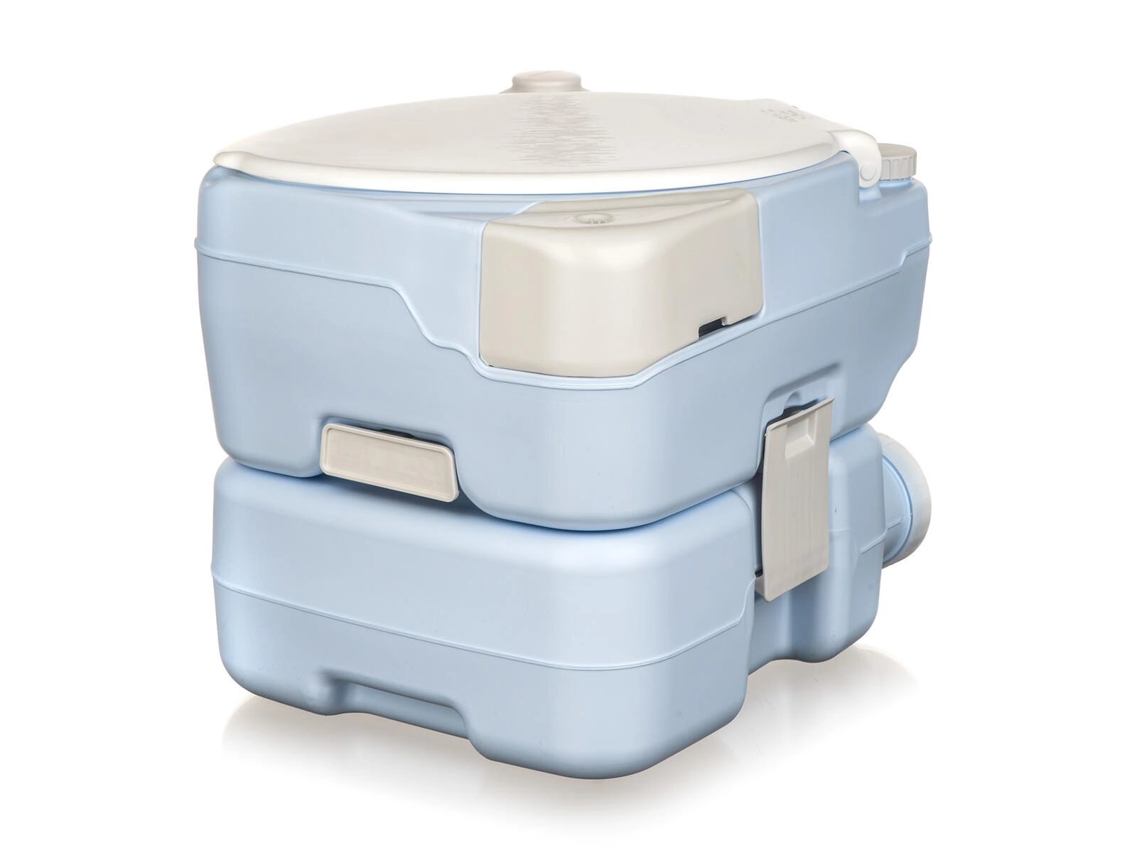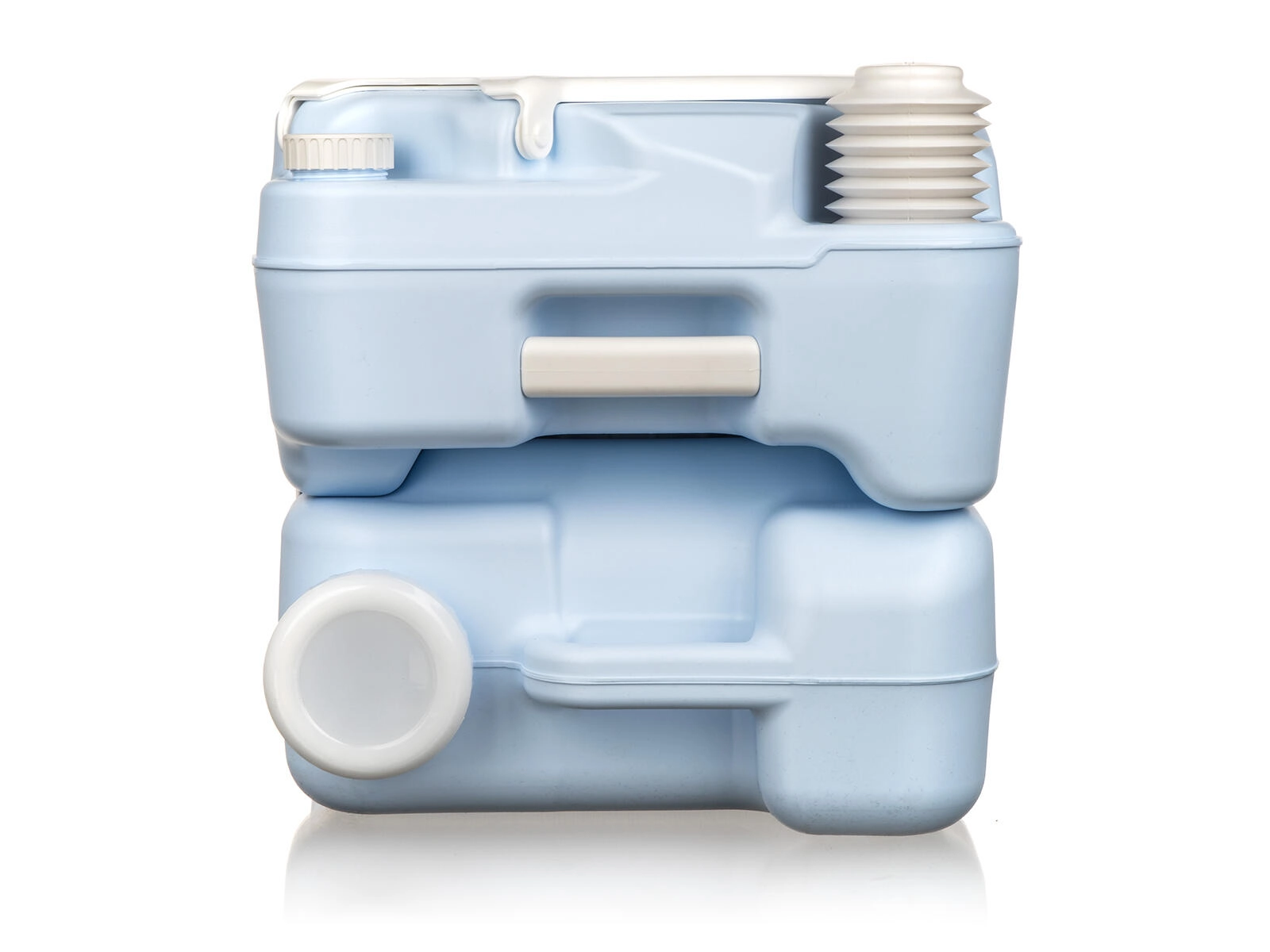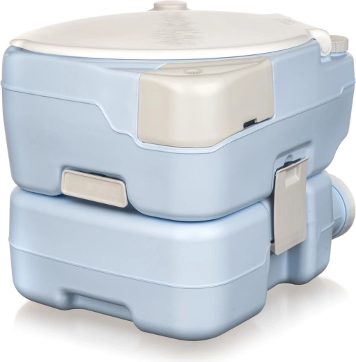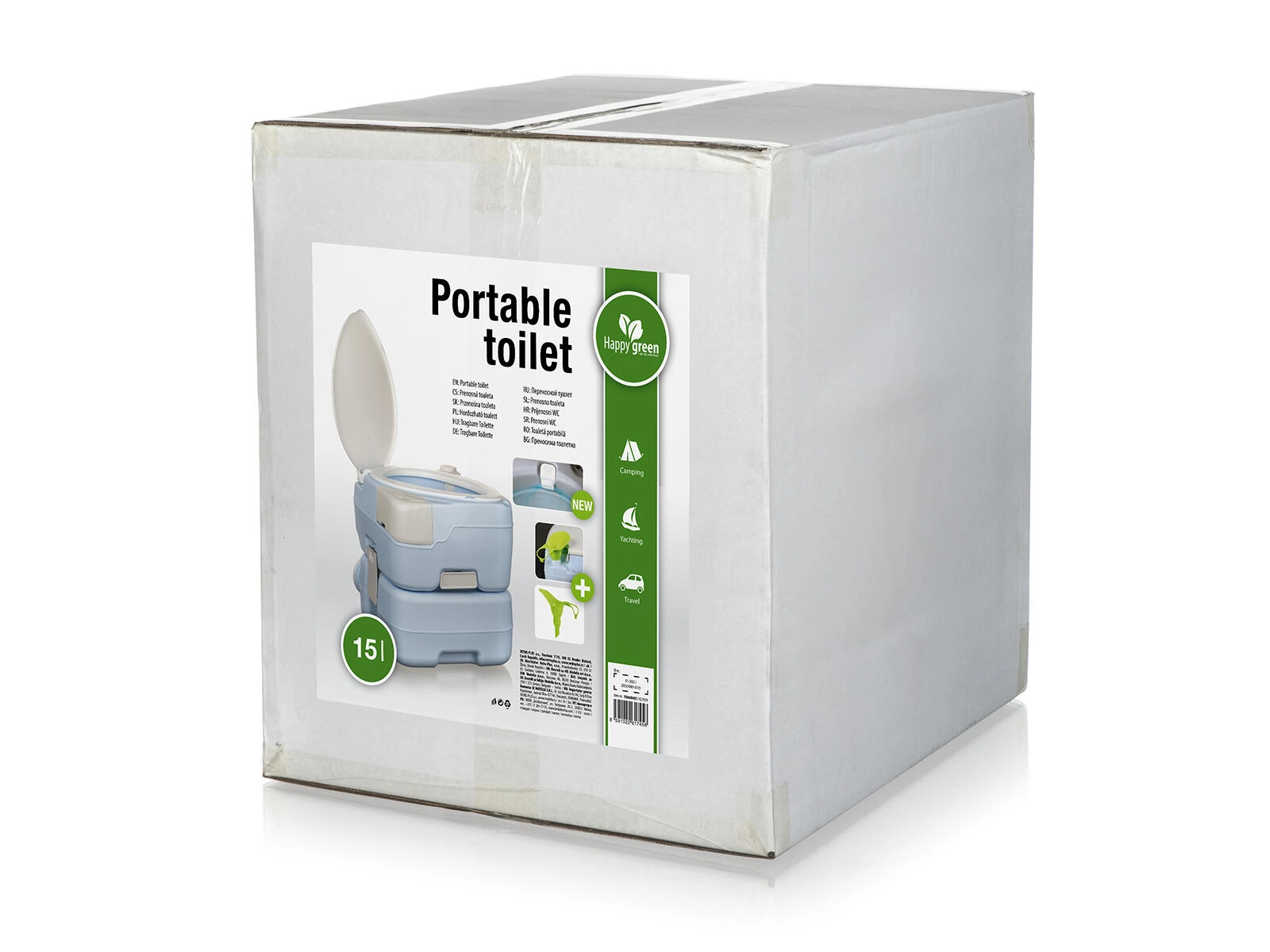 Practical portable chemical toilet with a waste tank capacity of 15 l and a fresh water tank of 11 l, ideal for cottages, campsites, caravans, and boats. It offers a natural seat height, mobility, and a durable HDPE construction. Thanks to the two-way flush nozzle, bellows flushing, and practical accessories (funnel, compartment), it ensures clean and comfortable use anywhere.