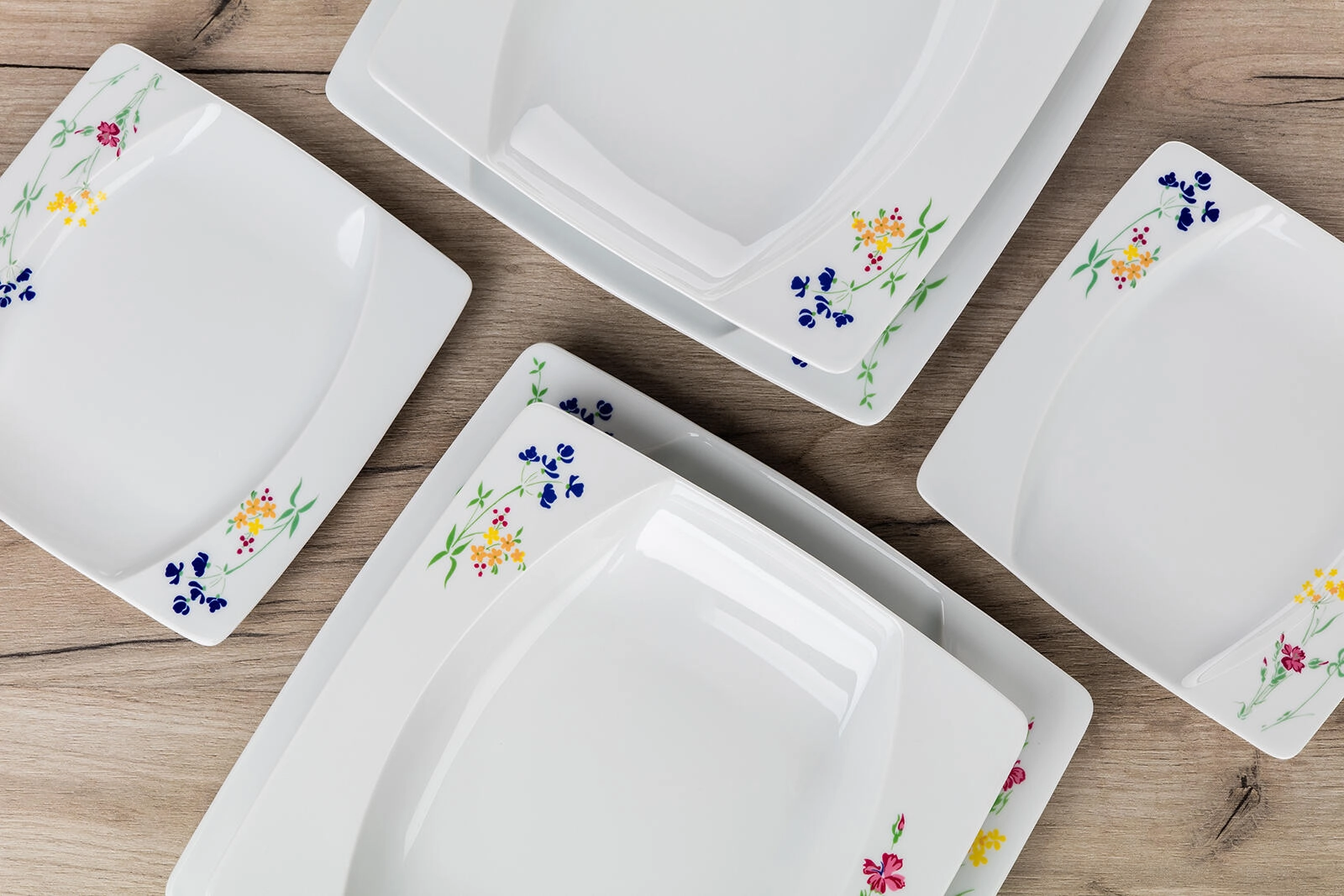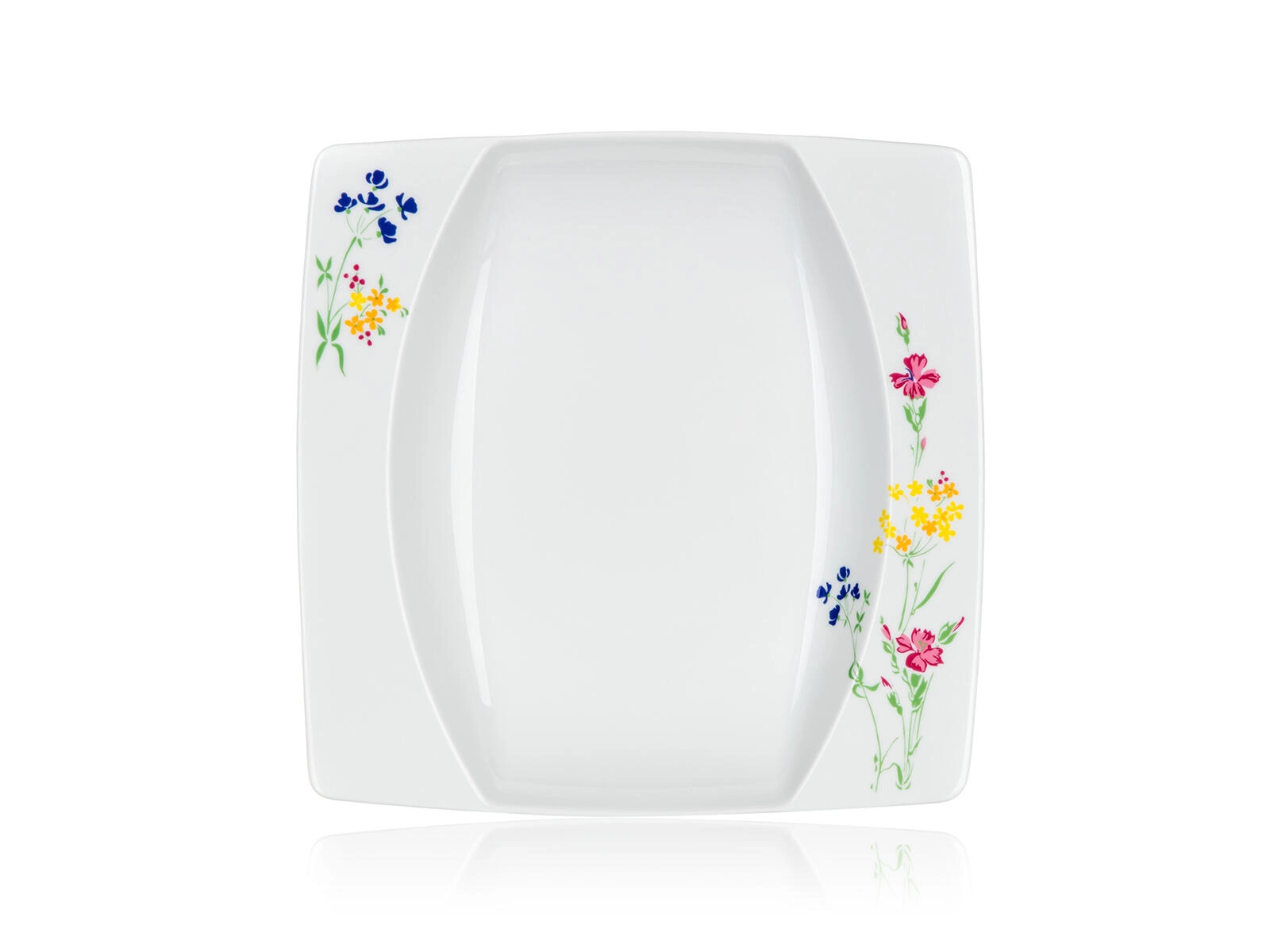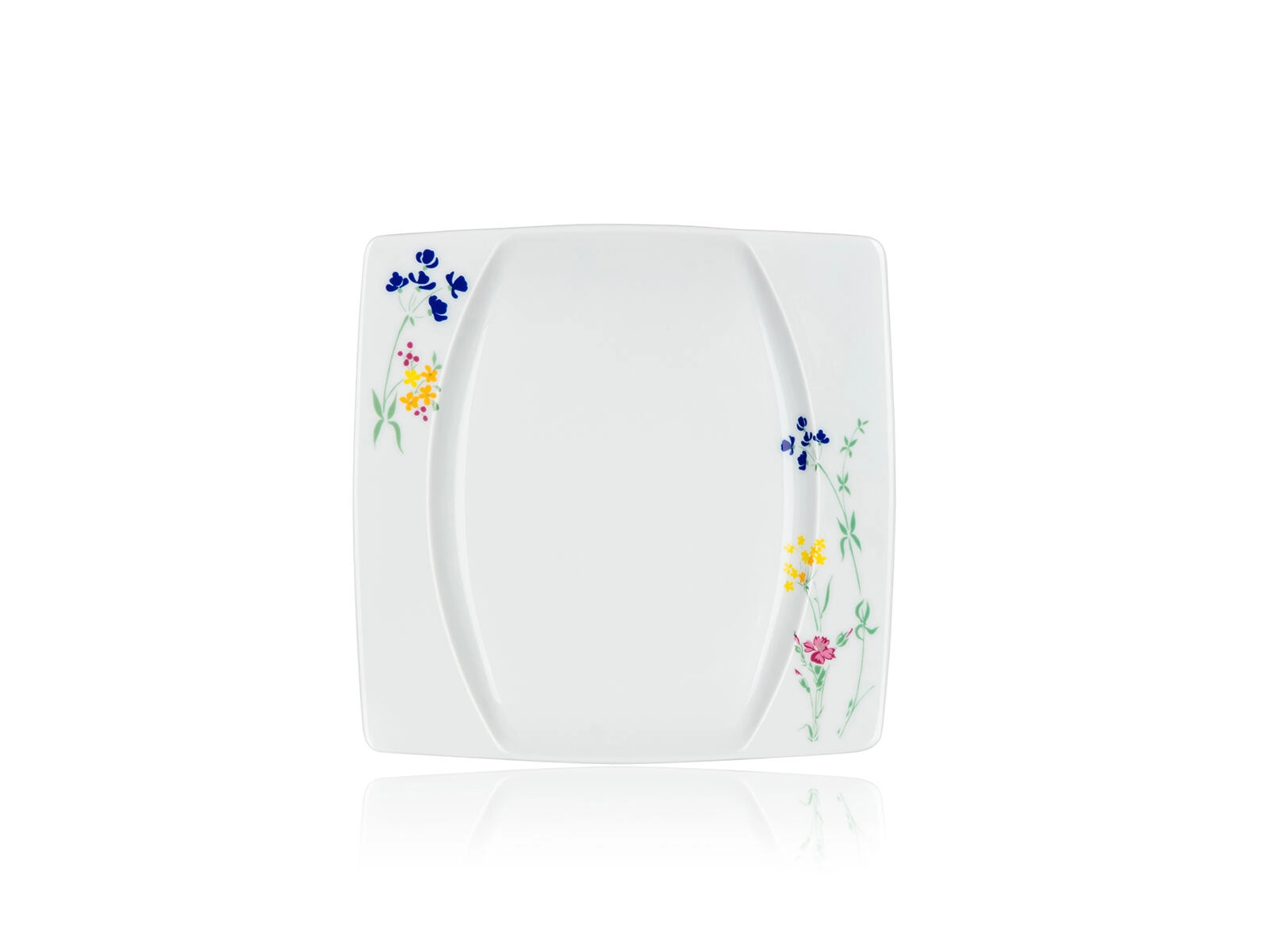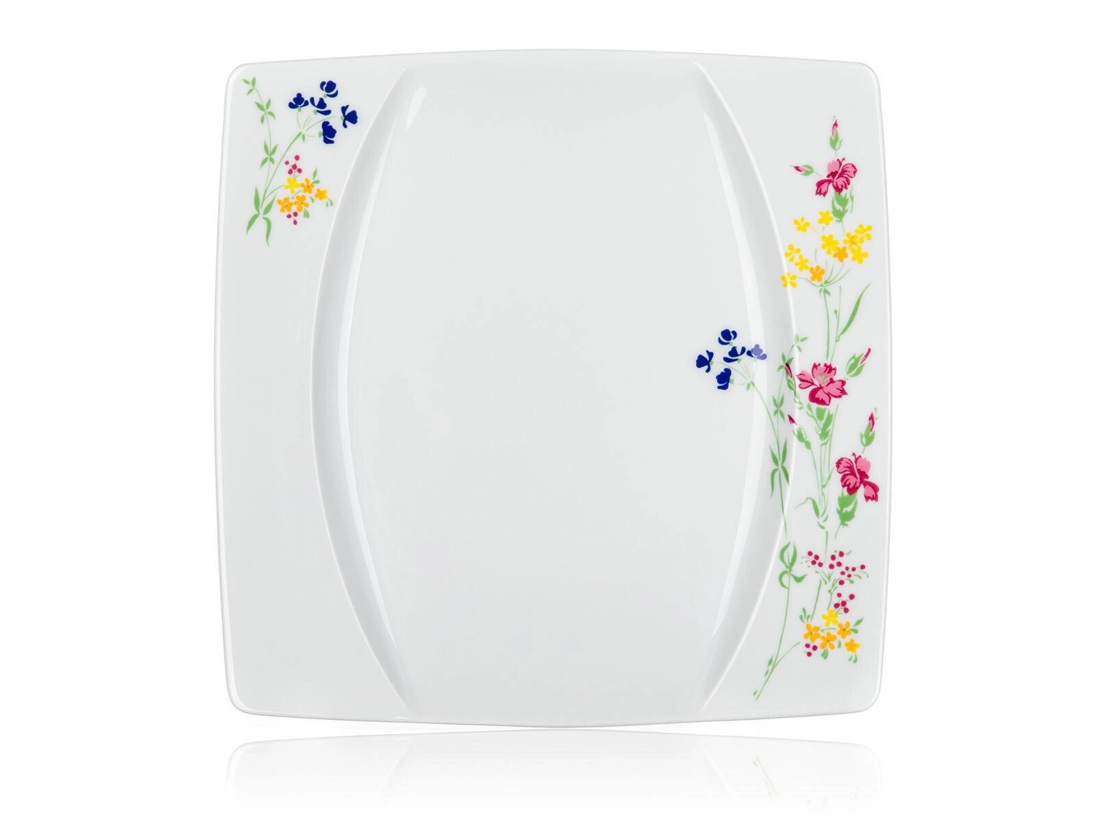 Stylish square plates with a delicate floral print on the corners give your table setting a distinctive character and are easy to combine with other tableware.