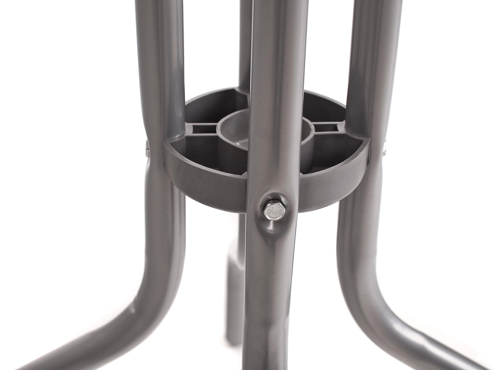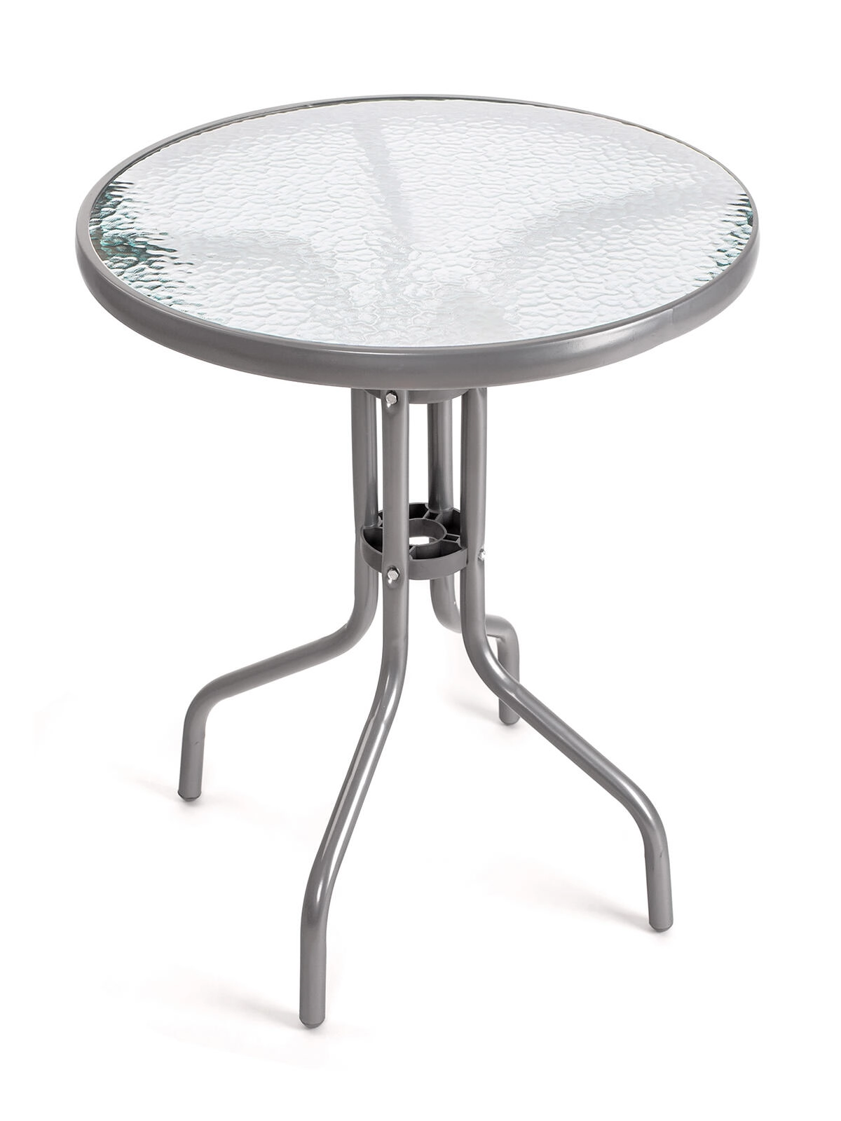The versatile round table with a 60 cm diameter offers ample space for drinks, snacks, and decor. A durable metal frame and quality glass top ensure long life and easy maintenance. The minimalist silver design pairs effortlessly with other outdoor furniture.