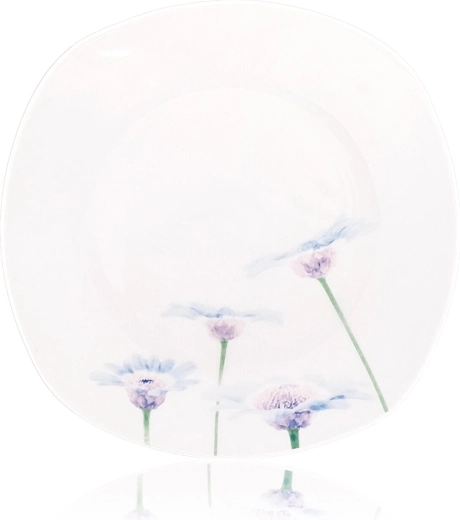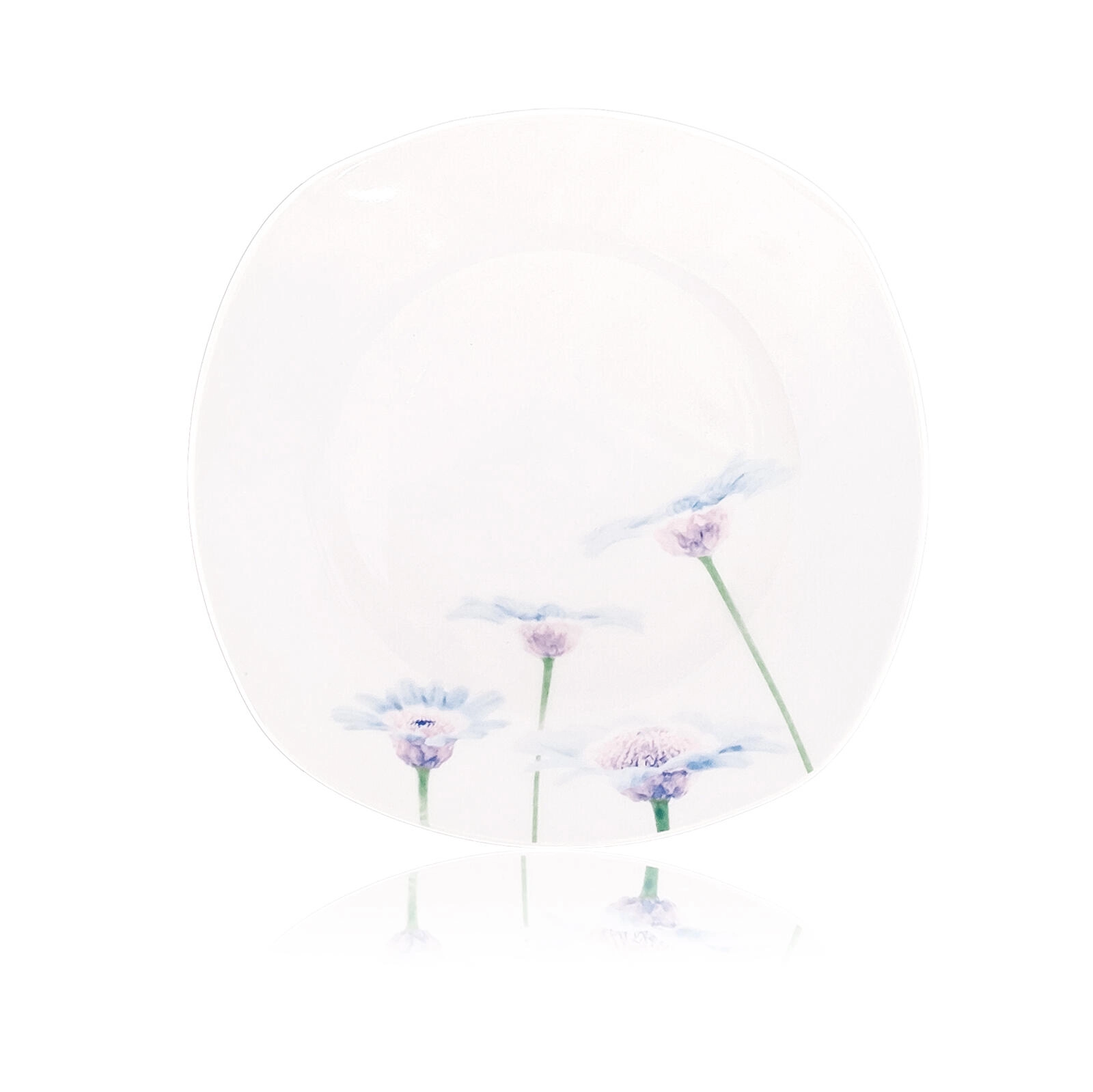 Create a beautifully coordinated table with the Blue Daisy set. White porcelain with a subtle blue‑violet floral motif looks clean and timeless, while the rounded square shape adds a modern touch. The set is a great choice for family dinners and festive occasions alike.