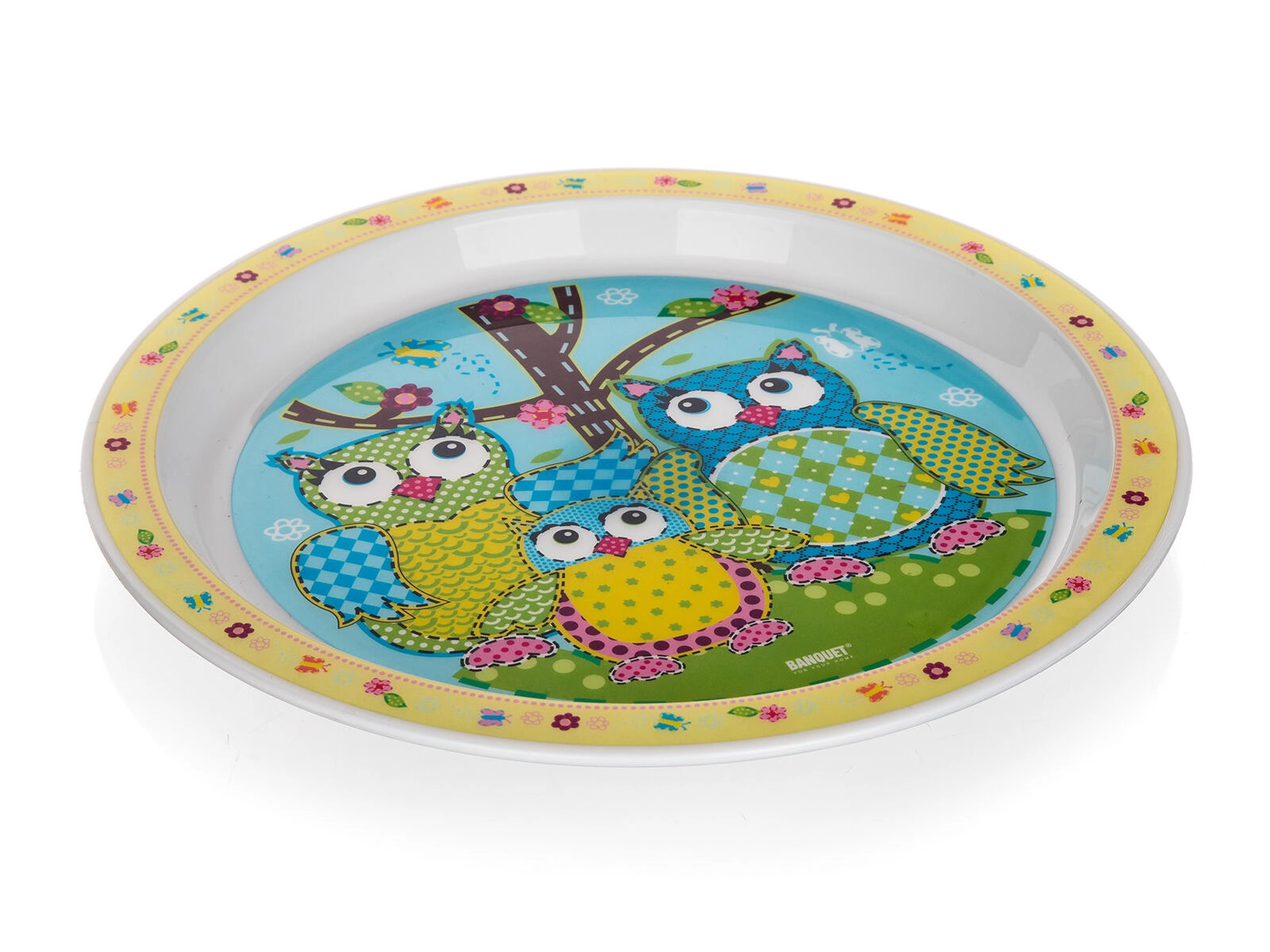 Adorable children's plate with an owl motif, 21 cm in diameter, made of quality plastic for everyday use. Offers easy cleaning, is a lightweight and safe solution for kids, and thanks to the playful design it encourages joyful eating. Not suitable for the microwave or the dishwasher.