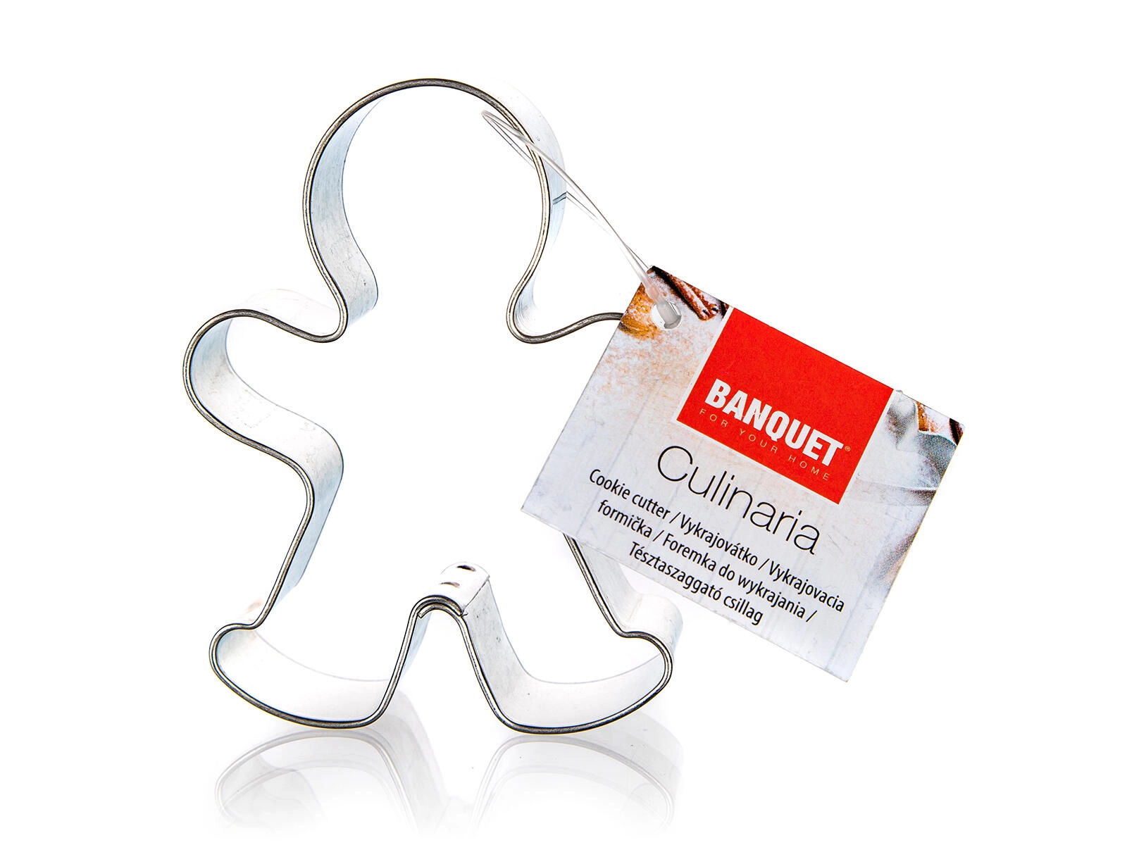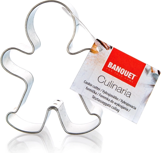 Practical gingerbread man–shaped cookie cutter for easy baking of cookies and gingerbread. Made from durable tin-plated steel, with a precise dough-cutting edge and a comfortable size of 5 × 6.5 × 1.6 cm for perfect shapes.