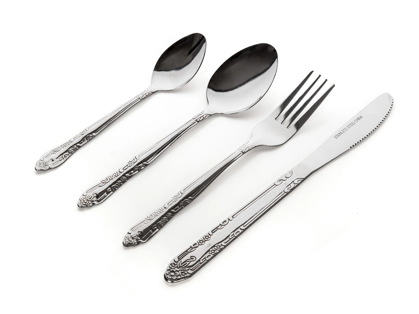Six knives, forks, spoons, and teaspoons—all coordinated in one design, ready for everyday meals and festive feasts.